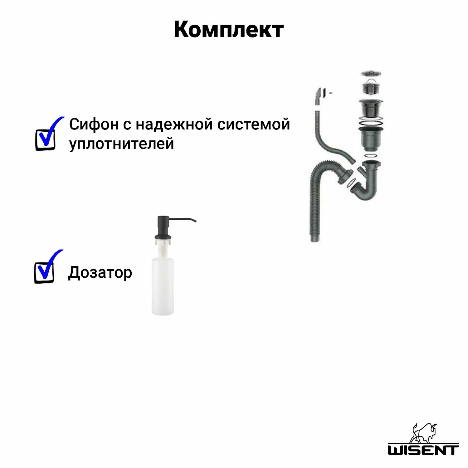 Мойка для кухни нержавеющая рифленая WISENT W35050D-S с сифоном и дозатором W405A