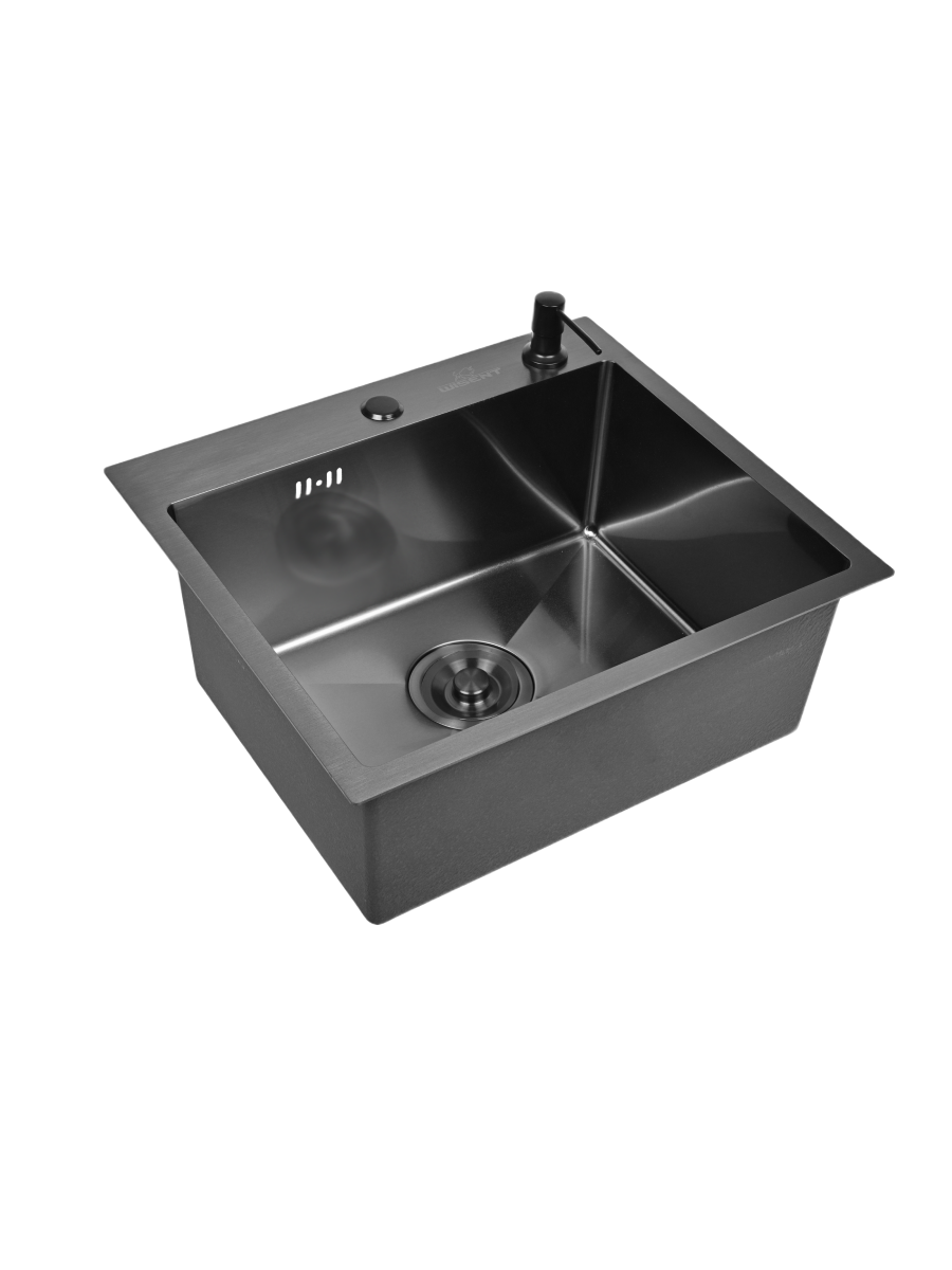 Комплект мойка для кухни нержавеющая врезная 50*50 с PVD покрытием с дозатором Wisent WS35050B/W405B/WGER010