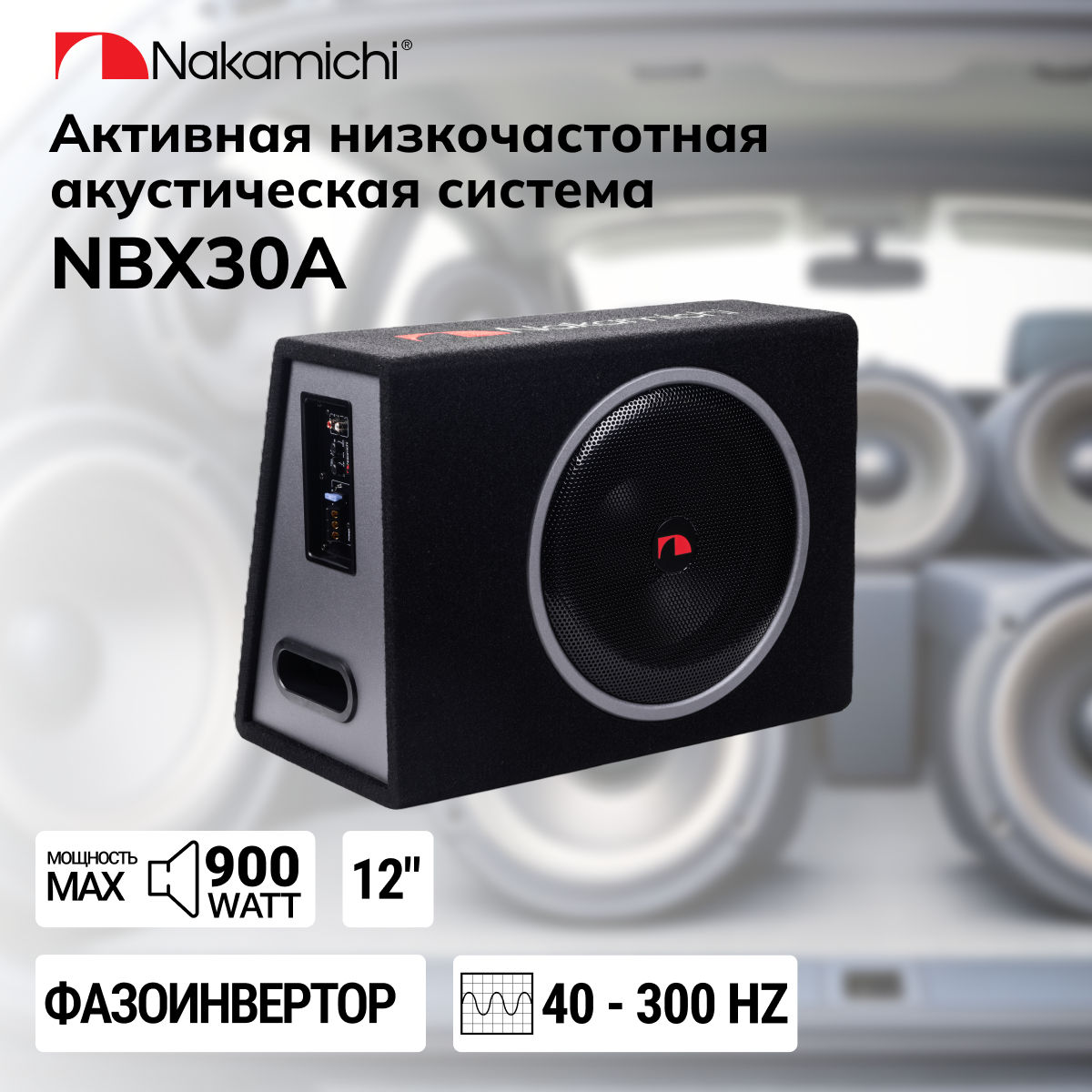 NAKAMICHI Сабвуфер автомобильный Nakamichi NBX30A 150Вт активный (30см/12")