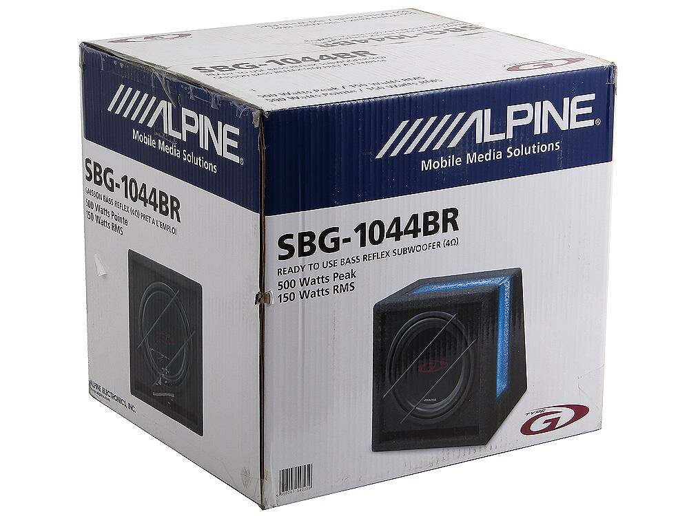Alpine SBG-1044BR сабвуфер 25см в корпусе с фазоинвертором, RMS/макс.150/500 Вт, 4Ом, 88,4дБ, 33-10