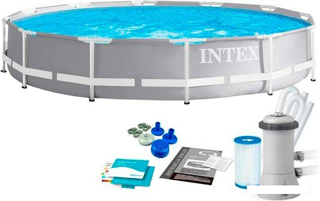 Каркасный бассейн Intex 366х76 см Prism Frame серый, фильтр-насос интересное: