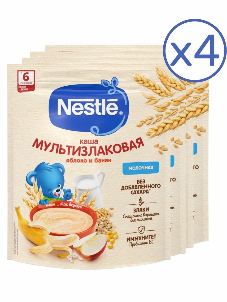 Купить Каша молочная Nestle мультизлаковая яблоко-банан с 6 месяцев 200 г 4 шт