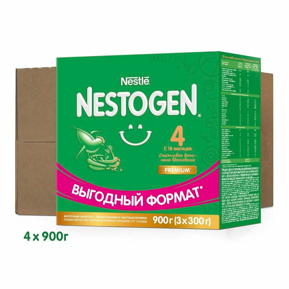 Купить Молочко детское Nestle Nestogen Premium 4, с 18 месяцев, с пребиотиками и лактобактериями 900 г 4 шт