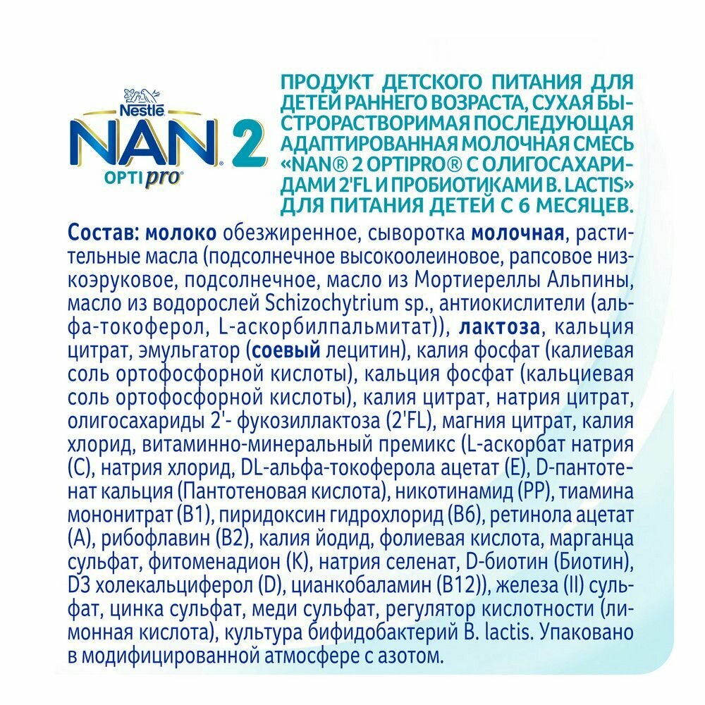 СохранитьМолочная смесь Nestle NAN 2 OPTIPRO для роста, иммунитета и развития мозга, с 6 месяцев, 400 г 4 шт интересное: