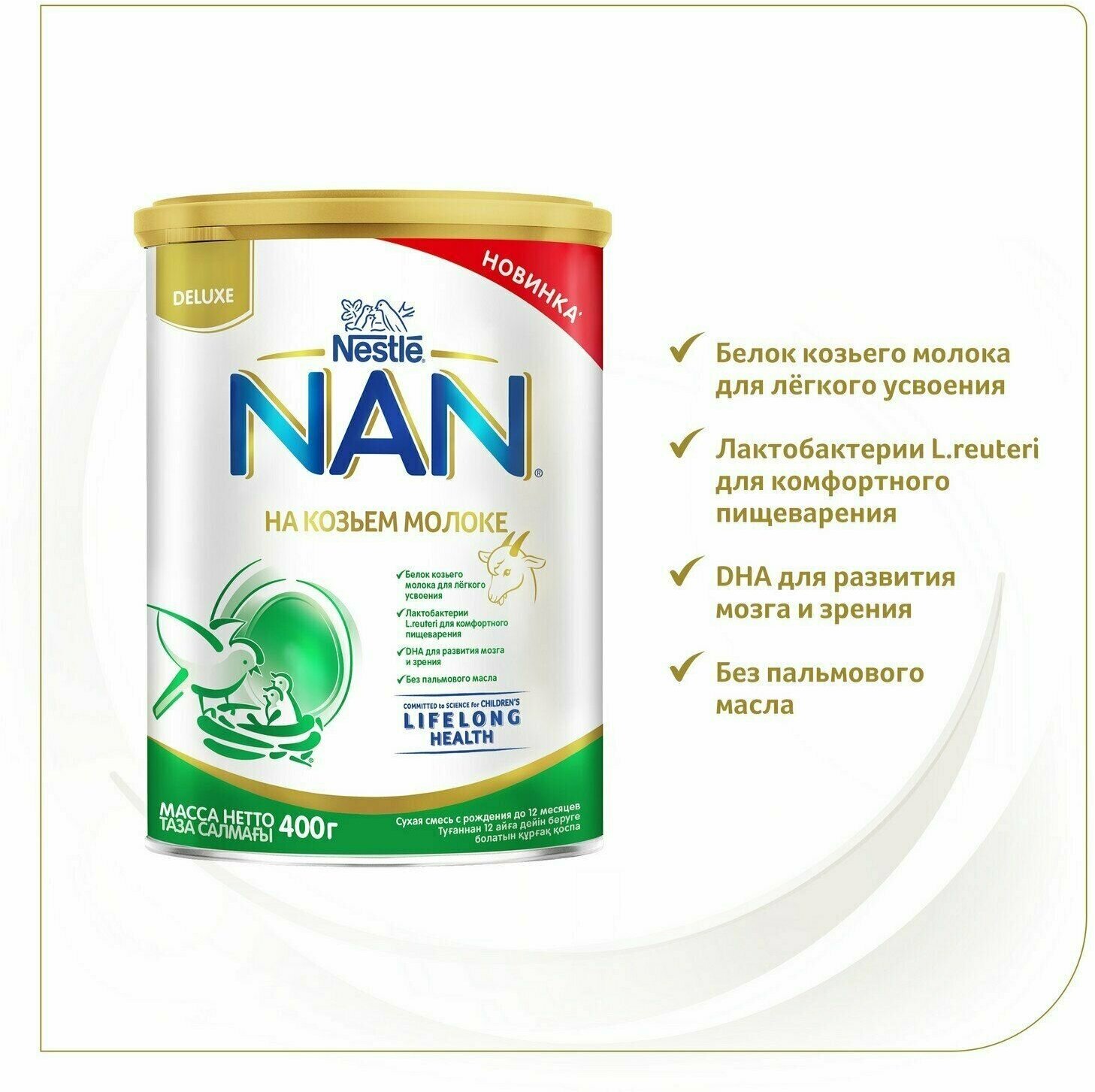 Сухая быстрорастворимая адаптированная молочная смесь на основе козьего молока NAN на козьем молоке, от 0 до 12 месяцев, 400г
