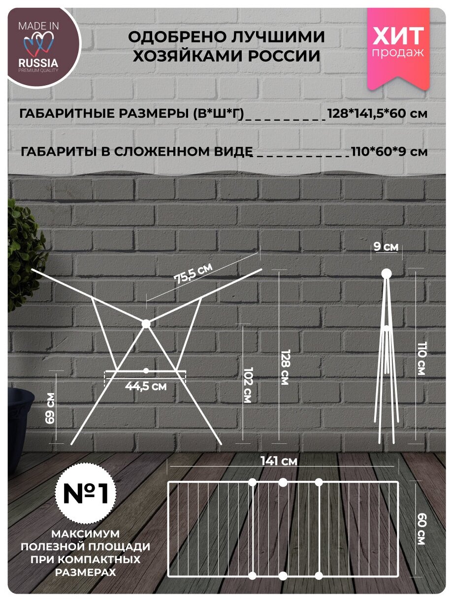 | Дополнительная информация | В собранном виде занимает мало места. Удобна для использования на балконе и внутри помещений. |