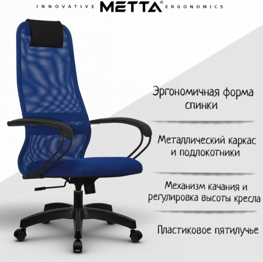 Кресло офисное метта «SU-B-8» пластик, ткань-сетка, сиденье мягкое, синее