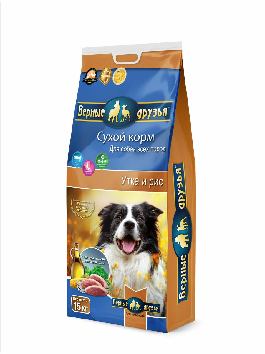 Сухой корм для собак Верные друзья, утка с рисом 1 уп. 15 кг