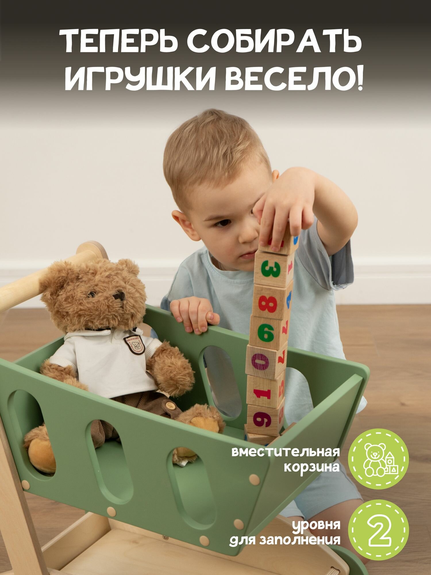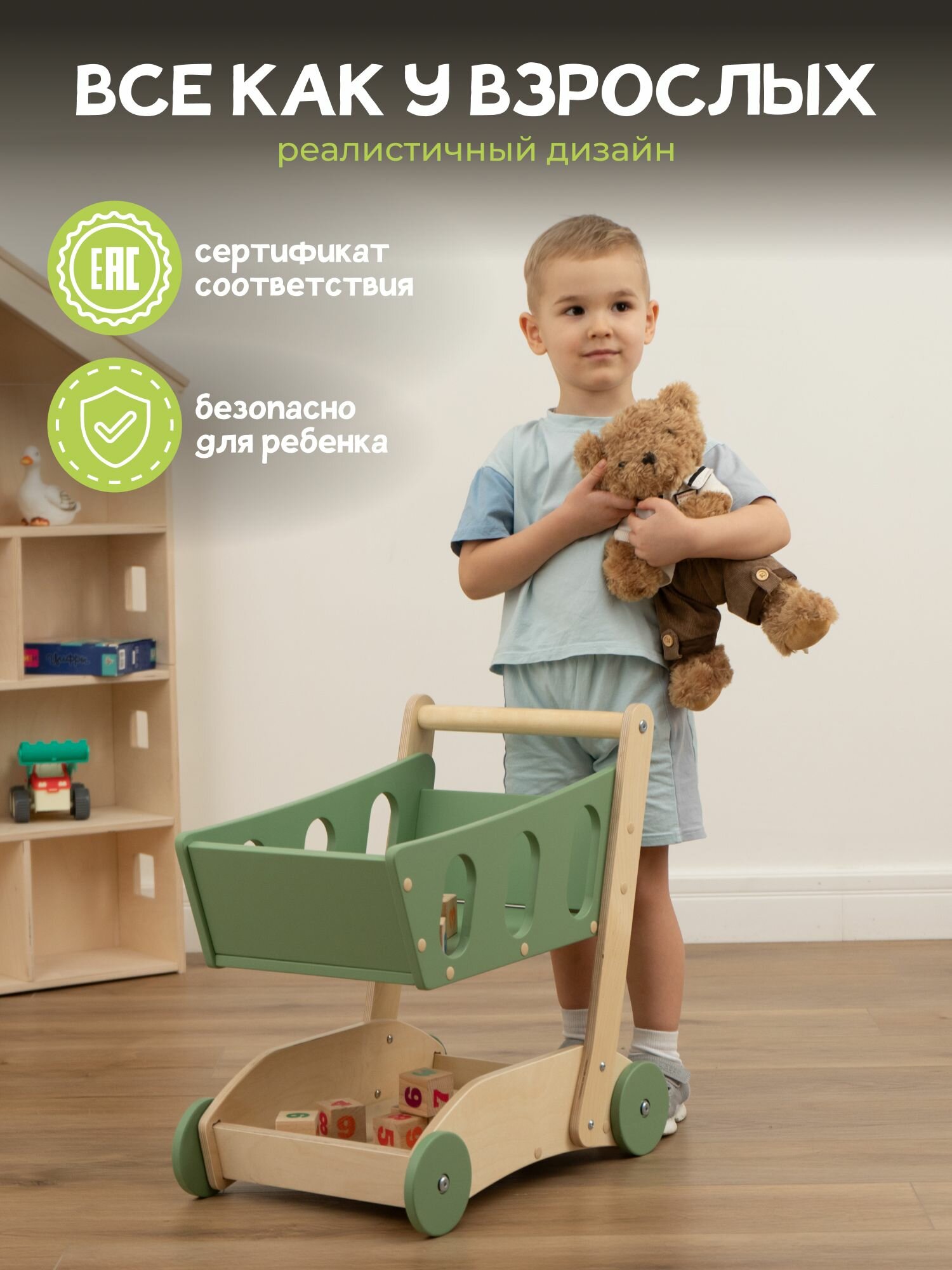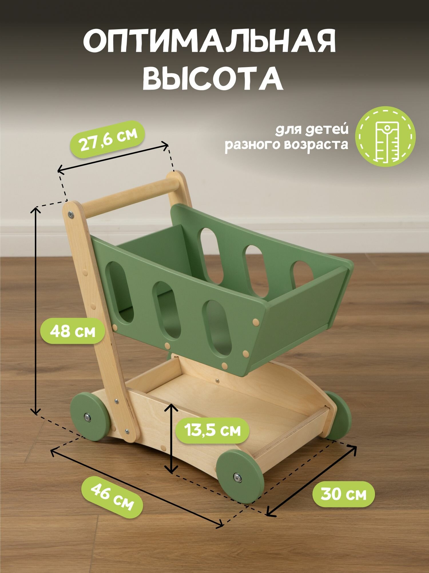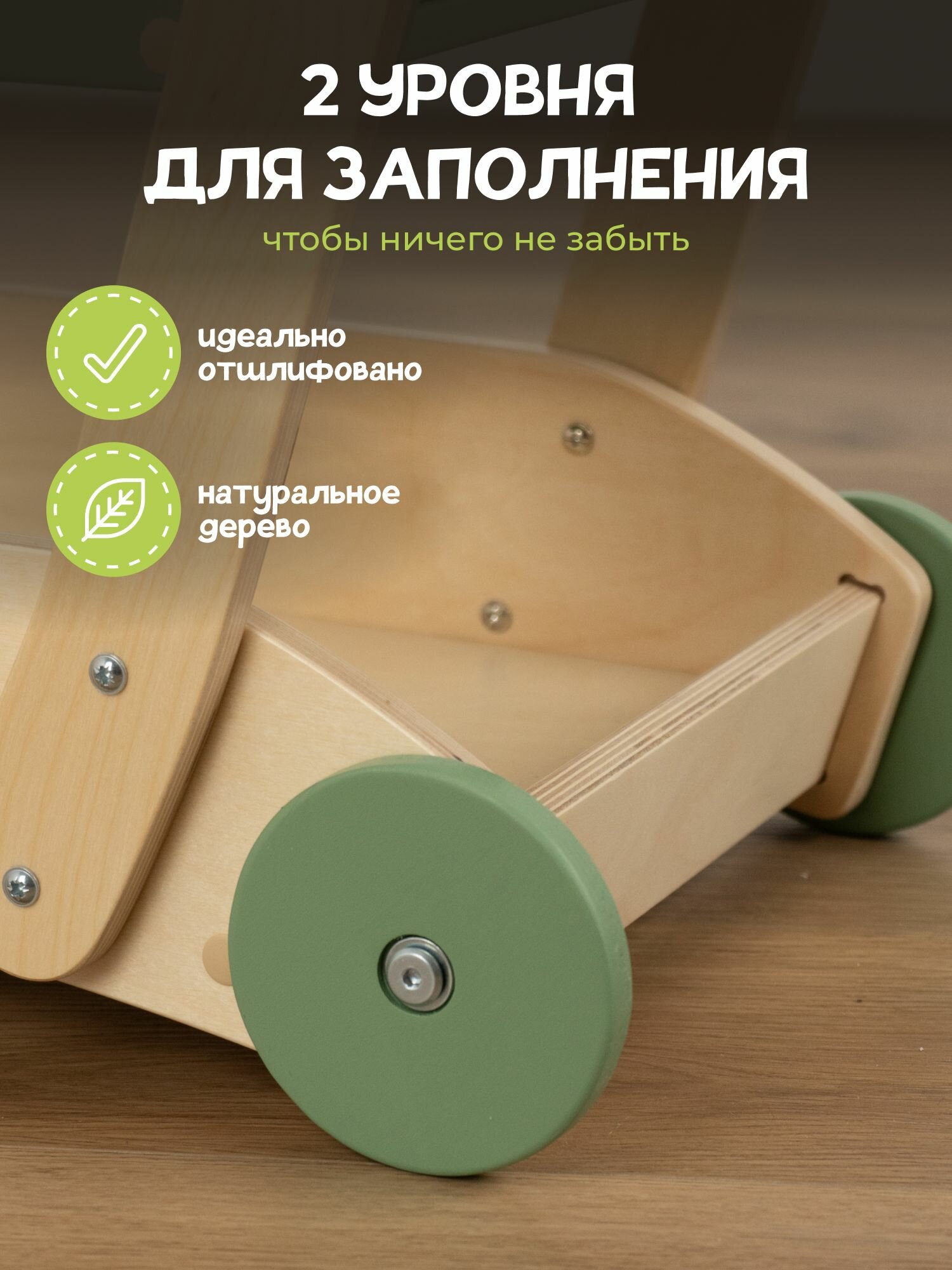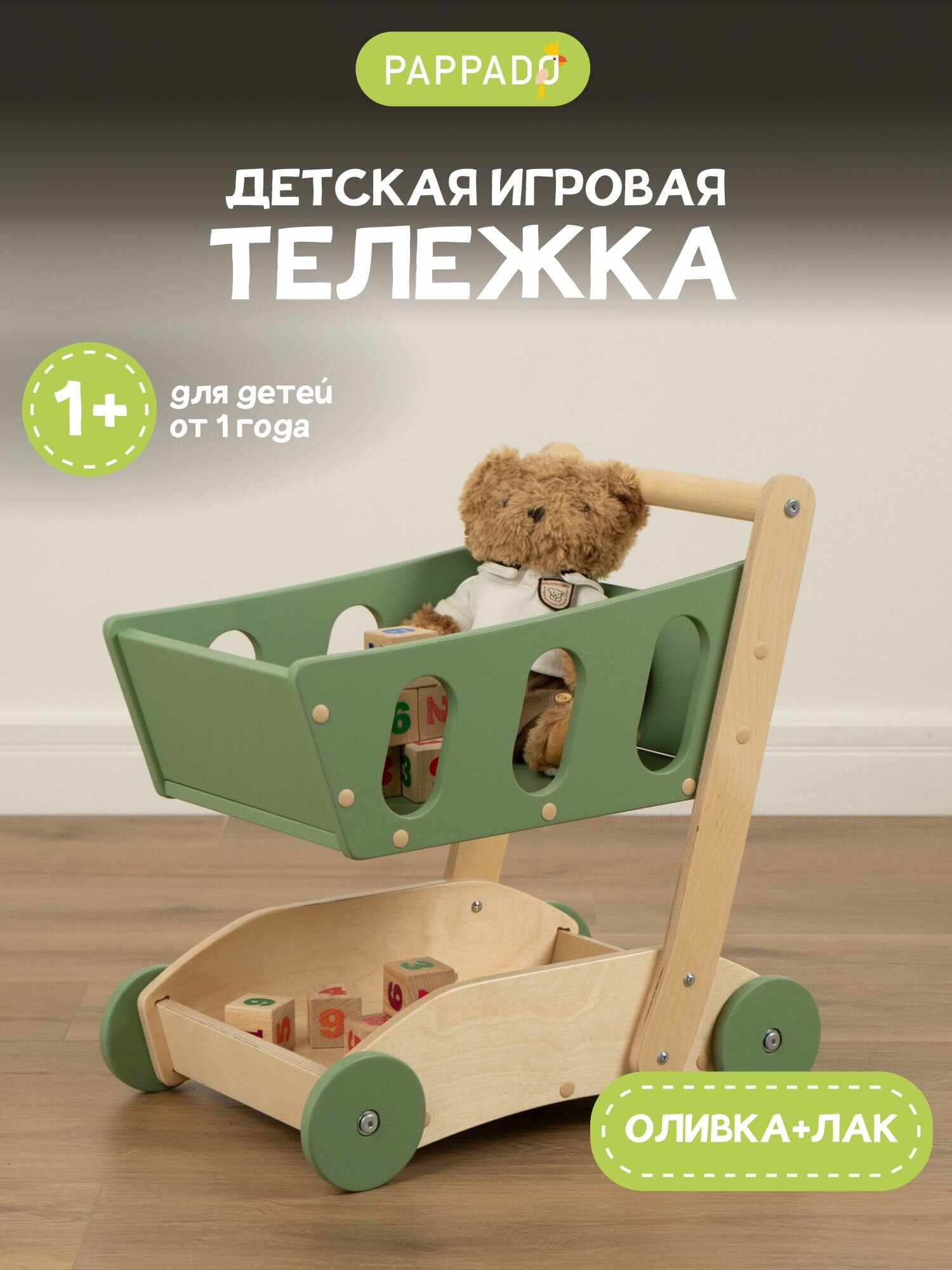 Детские игрушки - каталка детская, ходунки тележка PAPPADO оливковый+лак интересное: