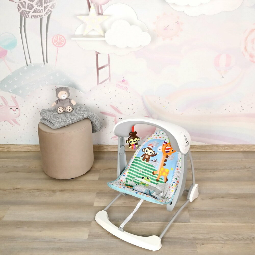 Электрокачели складные для новорожденного, Pituso Pino Giraffe, шезлонг качели детские для укачивания, съемный чехол, музыка, цвет мульти серый