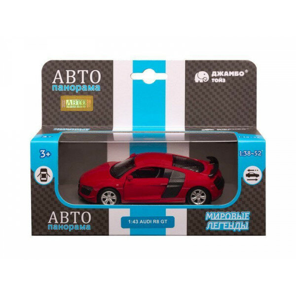 Машинка металлическая Автопанорама 1:43, Audi R8 GT, красный, инерция, открываются двери, в коробке (JB1251263)
