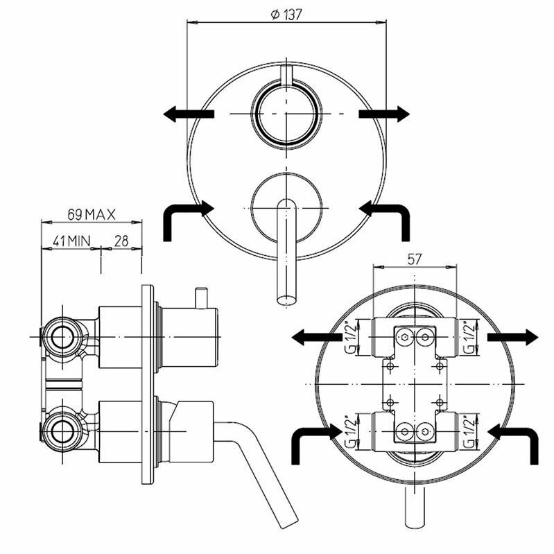 Смеситель для ванны и душа встраиваемый Paini Pixel new 81CR6911NEW, со скрытой частью