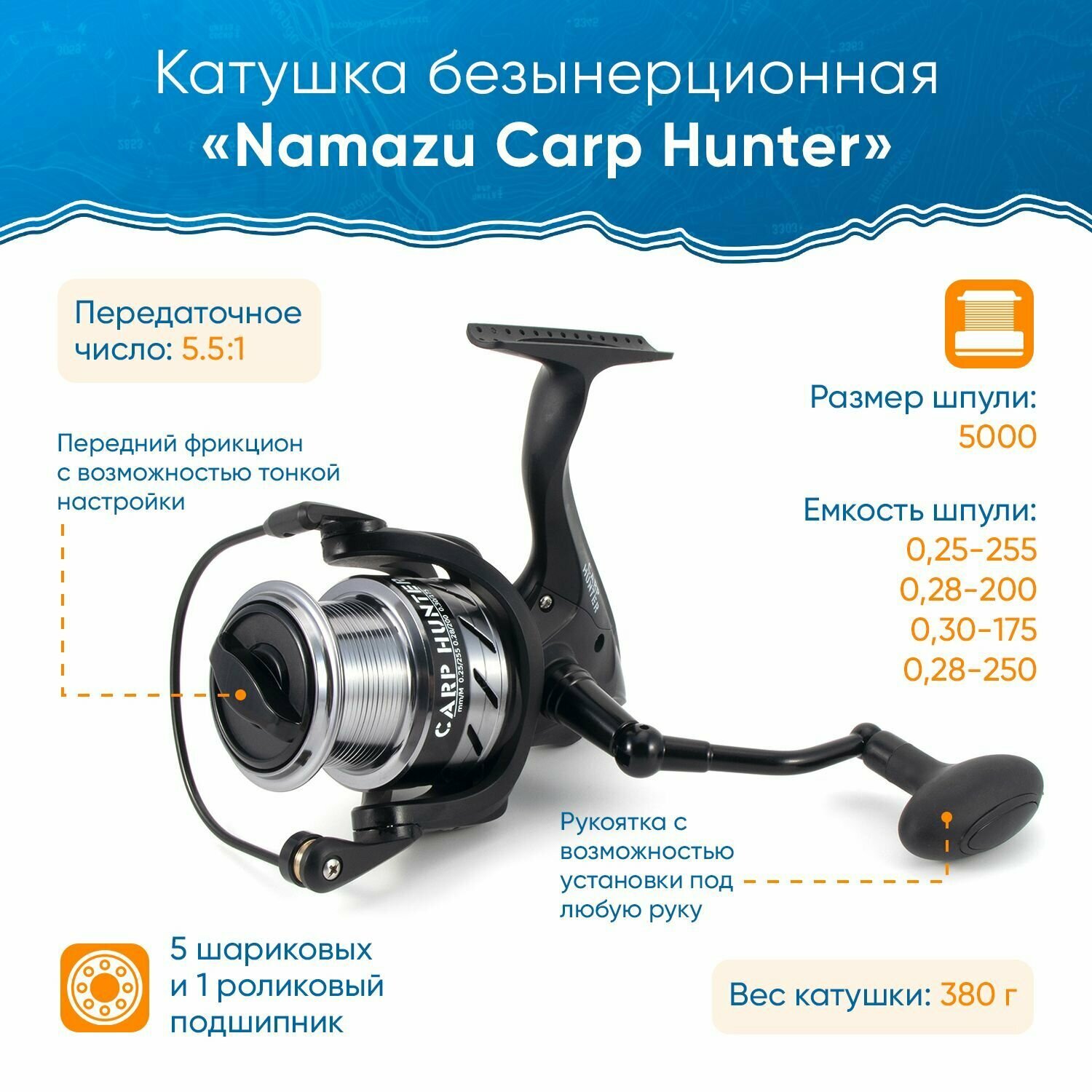 СохранитьКатушка безынерционная Namazu Carp Hunter Ch5000 5+1 подш. метал. шпуля + запасная графит. Шпуля интересное: