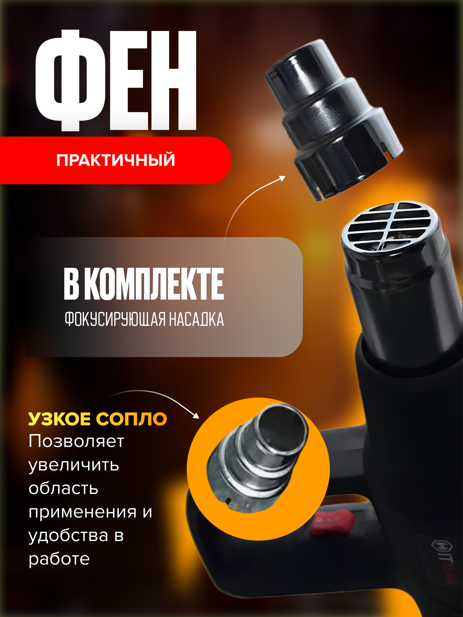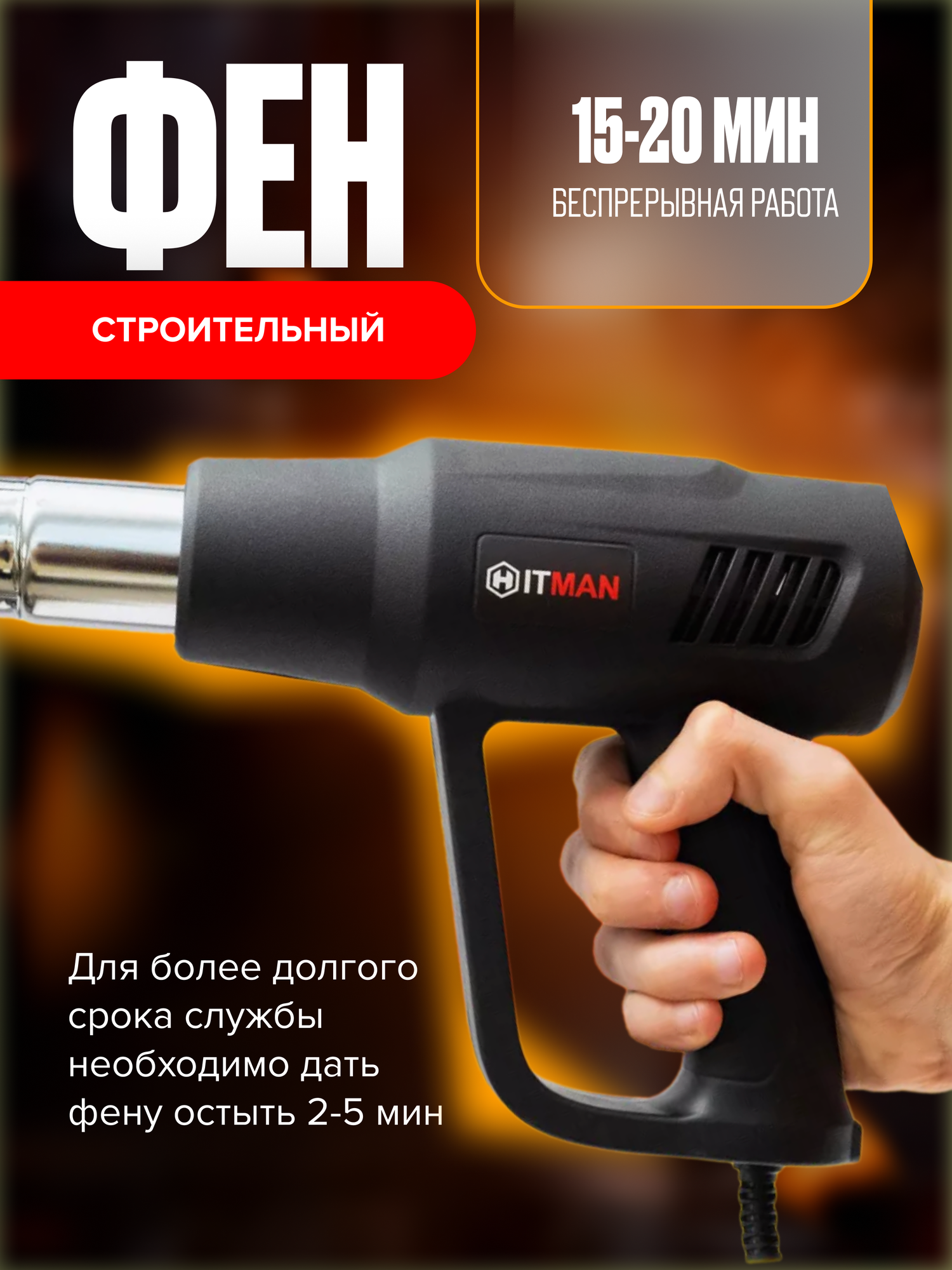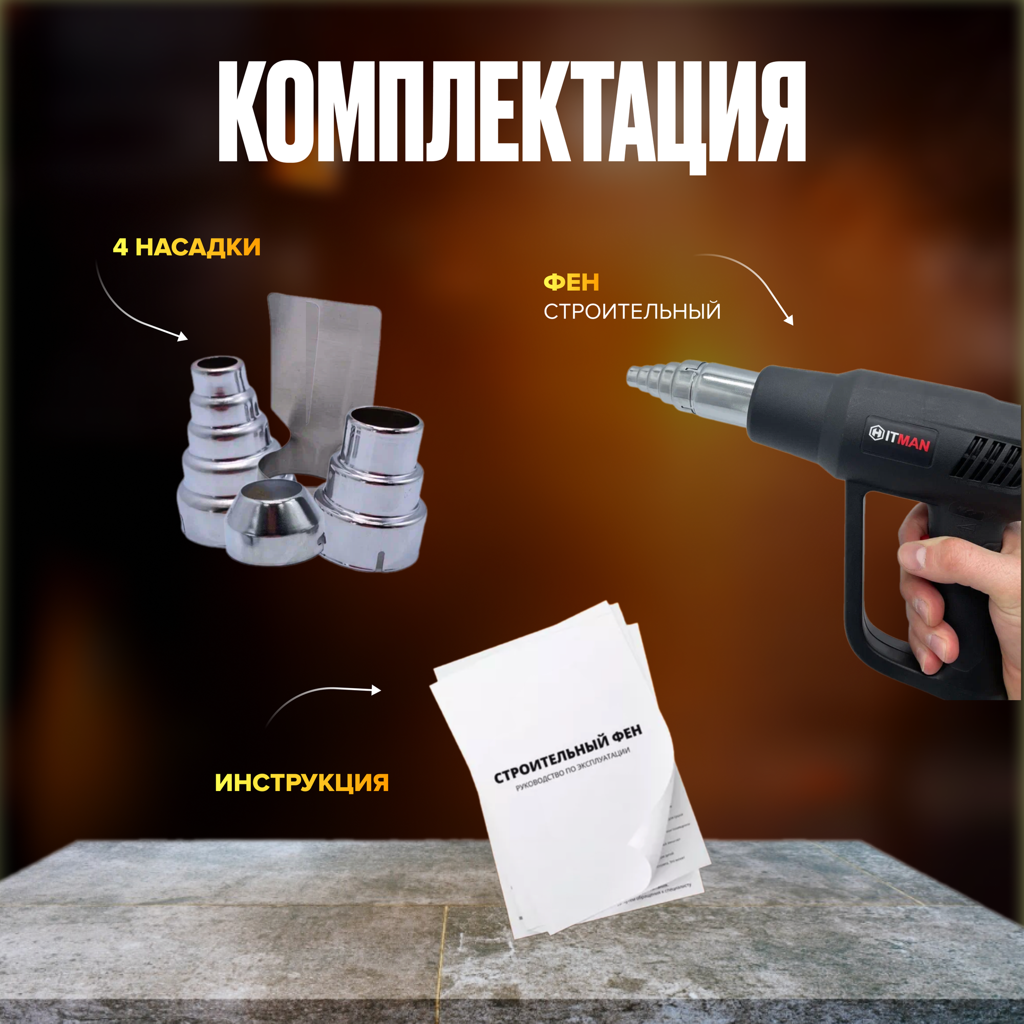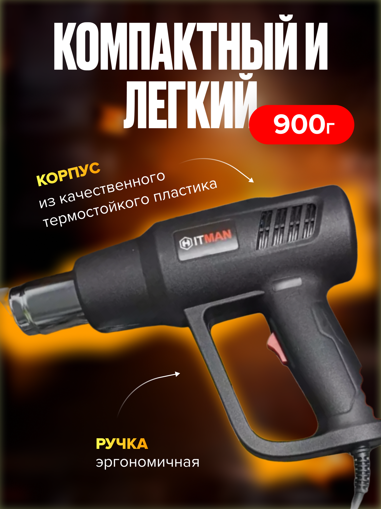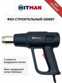 Строительный фен Hitman QR-85B1, 2000 Вт черный 4 насадки в комплекте интересное: