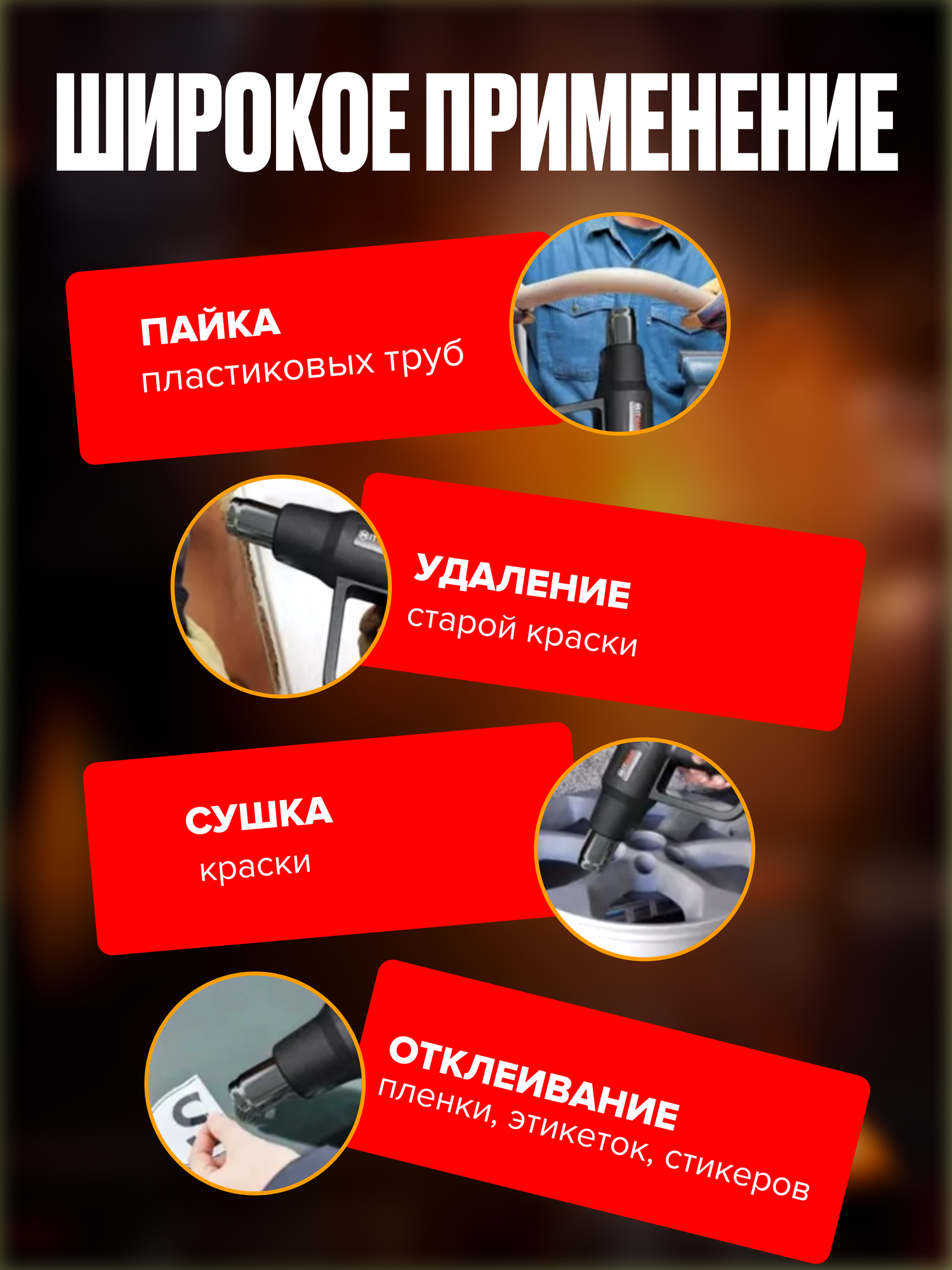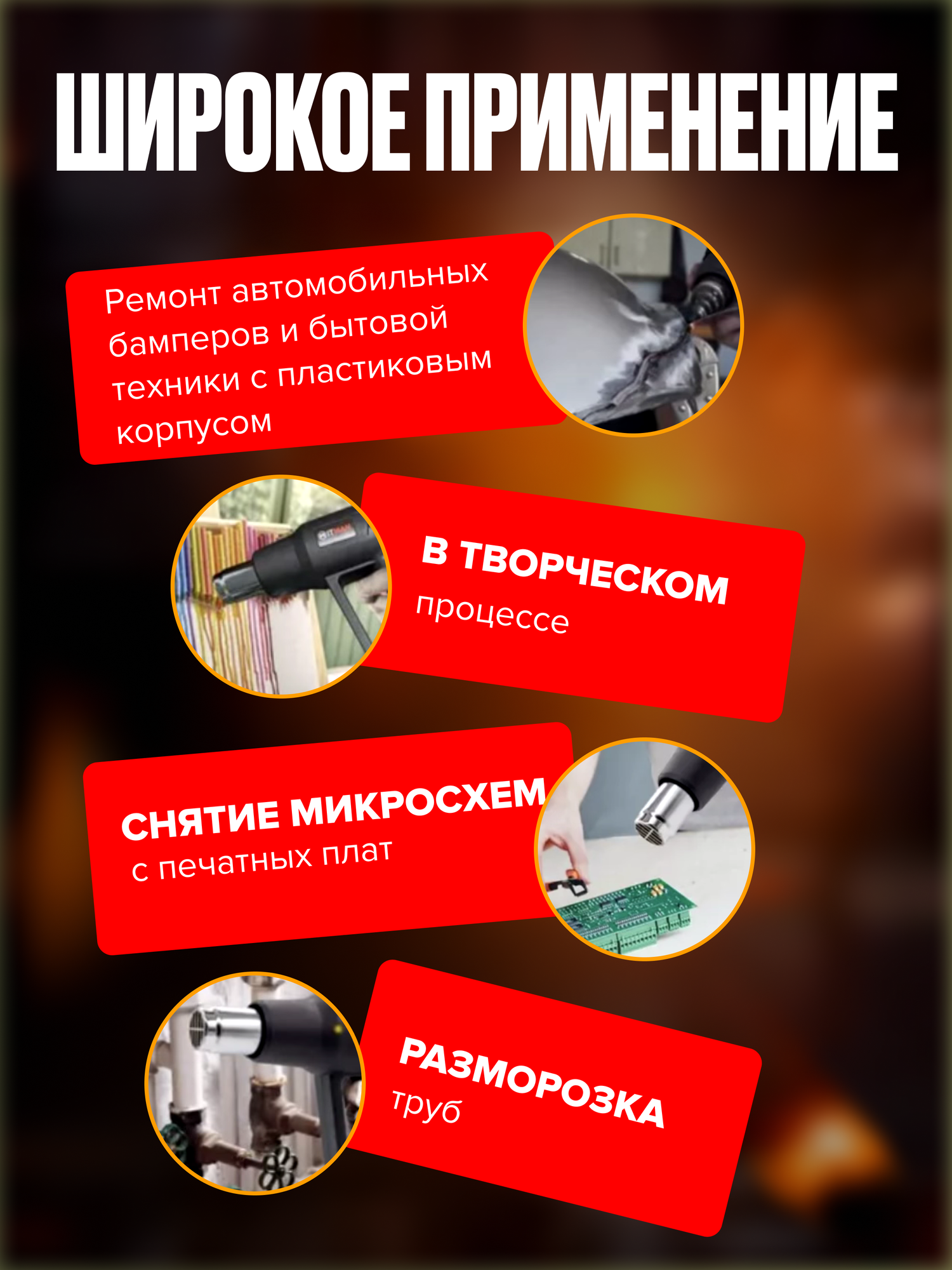 | Назначение | размягчение покрытий / сварка пластика / удаление краски |