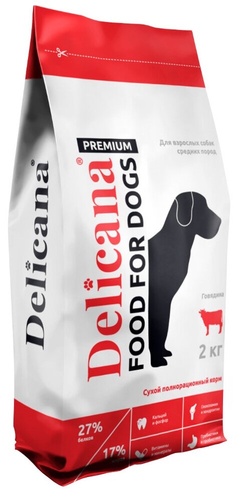 DELICANA для собак средних пород (говядина) (вес: 2, упаковка: 2 кг.)