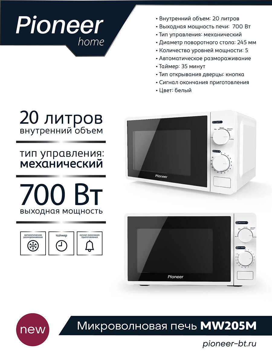 Ниже Вы можете прочитать отзывы на Pioneer Микроволновая печь Mw205m ., ознакомится с подробными характеристиками, посмотреть интересные обзоры и фотографии на Pioneer Микроволновая печь Mw205m ..