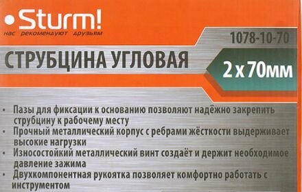 СохранитьСтрубцина угловая, 2x70мм, глубина зажима 70мм, угол зажима 90°, Sturm! интересное: