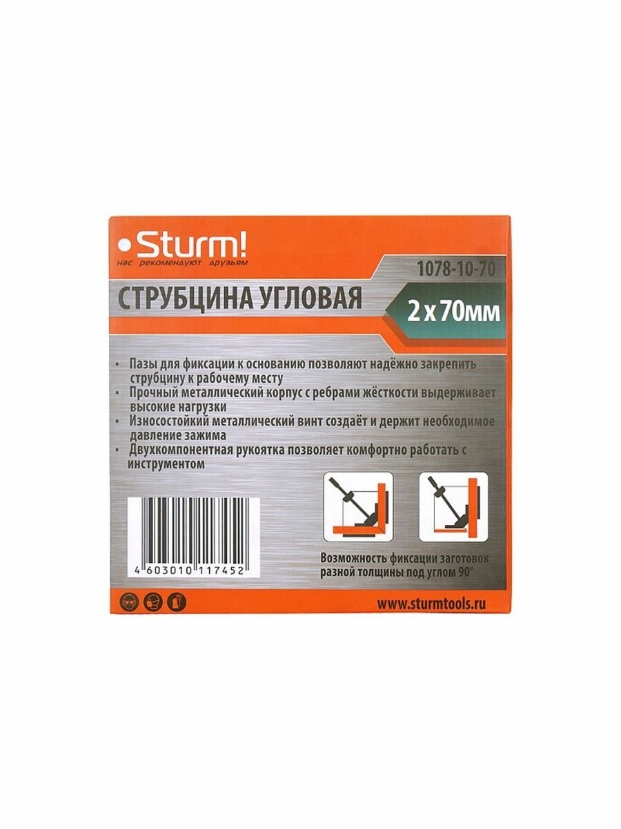 Струбцина STURM 1078-10-70 угловая 2x70мм, глубина зажима 70мм, угол зажима 90° (STURM)