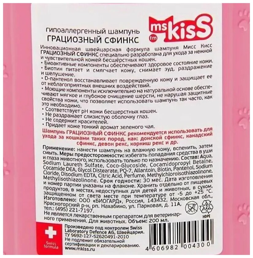 Купить Ms. Kiss № 3 шампунь Грациозный сфинкс 200 мл