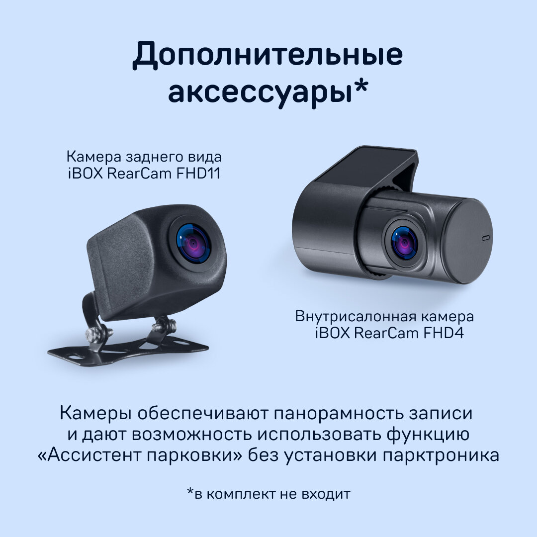 | Дополнительная информация | При подключении второй камеры разрешение основной камеры оптимизируется до 2K QHD 2560×1440 при 30 к/с. Комплектация: Видеорегистратор, Карта памяти на 16ГБ, Камера заднего вида, Крепление на скотче, Адаптер питания, Чехол, Адаптер для карт памяти , CPL-фильтр, Запасной 3М-скотч, Предохранители, Документация |