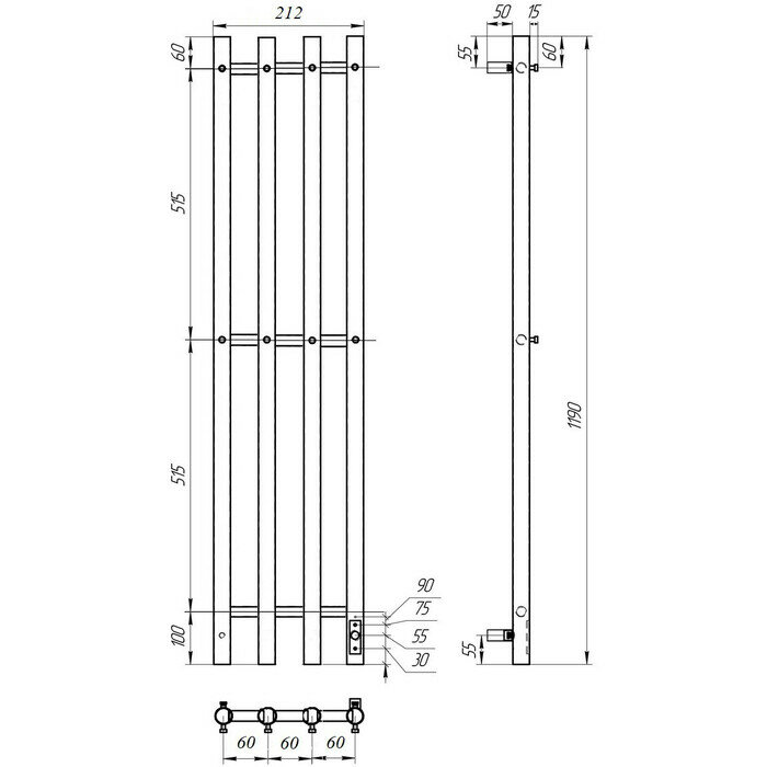 Полотенцесушитель электрический 80x1200 POINT Деметра (PN12812 П3) диммер справа