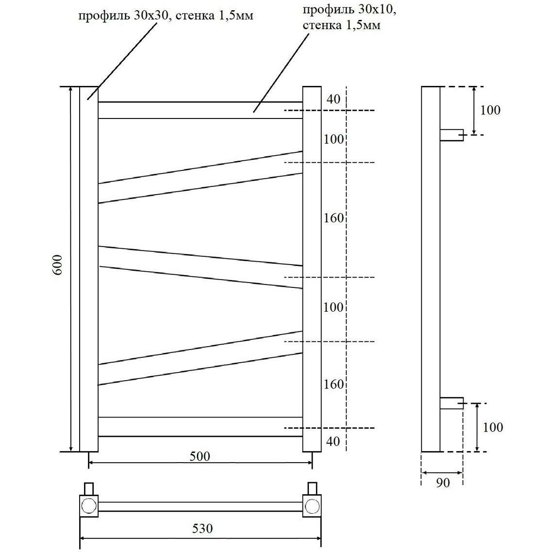 Полотенцесушитель водяной 500x600 POINT Вега (PN71556 П5)