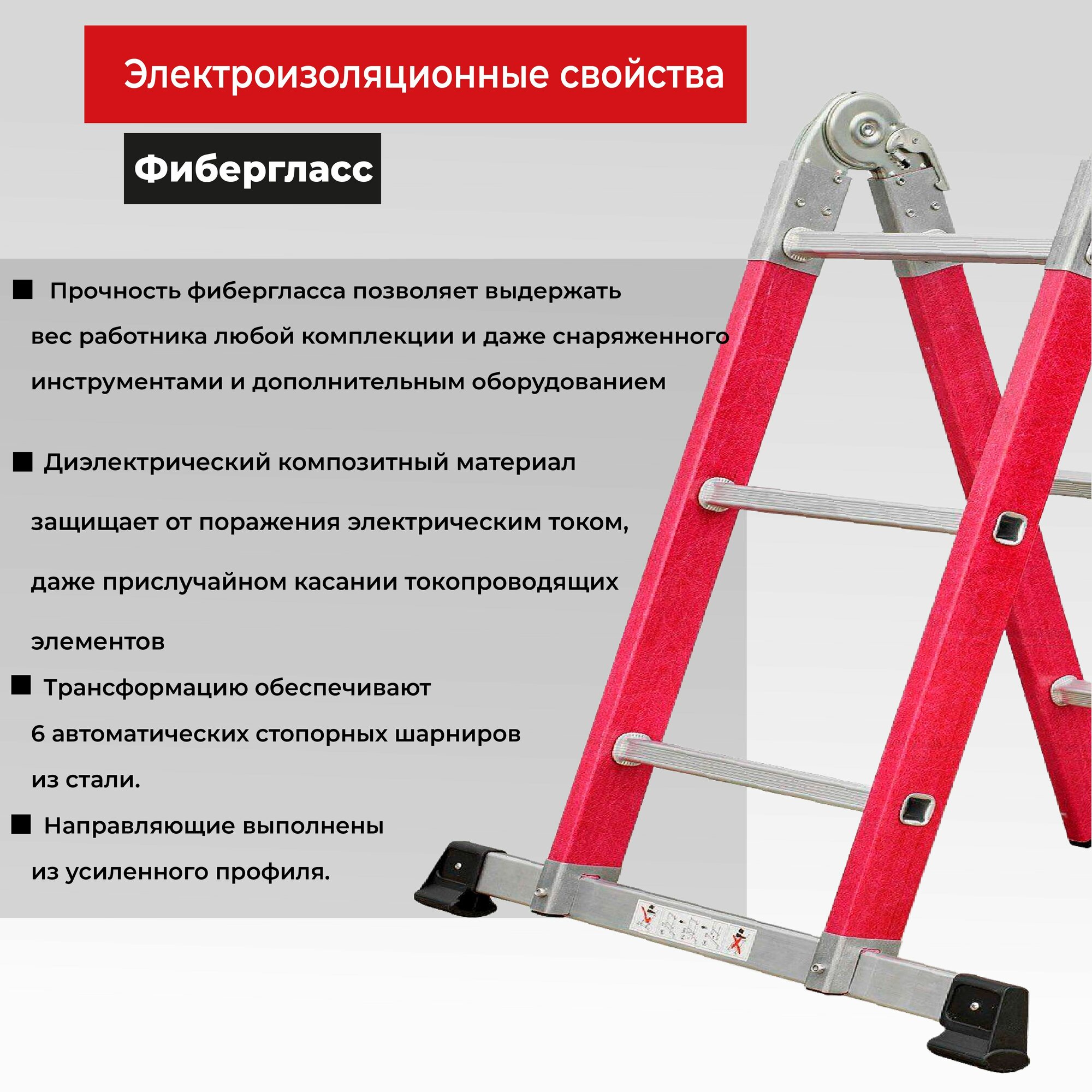 Лестница 2-х секционная трансформер диэлектрическая TeaM Q0230-6 интересное: