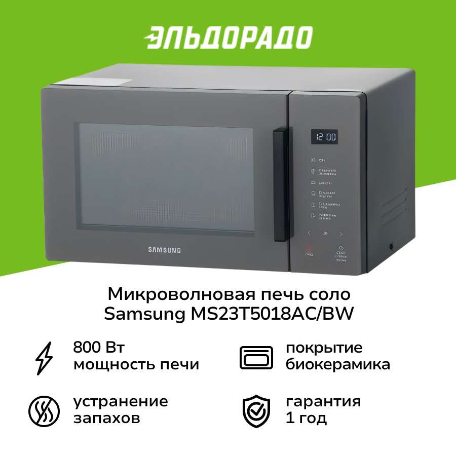 Микроволновая печь Samsung MS23T5018AG/BW, 800Вт, 23л, серый