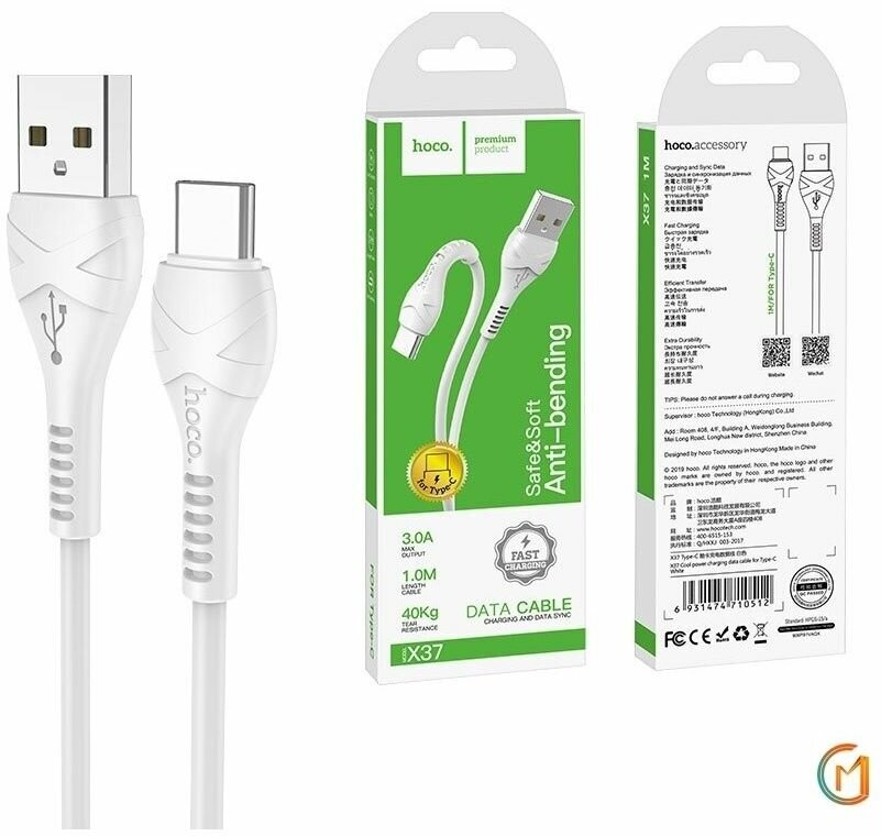 Кабель USB Type-C X37 1M 3.0A HOCO белый