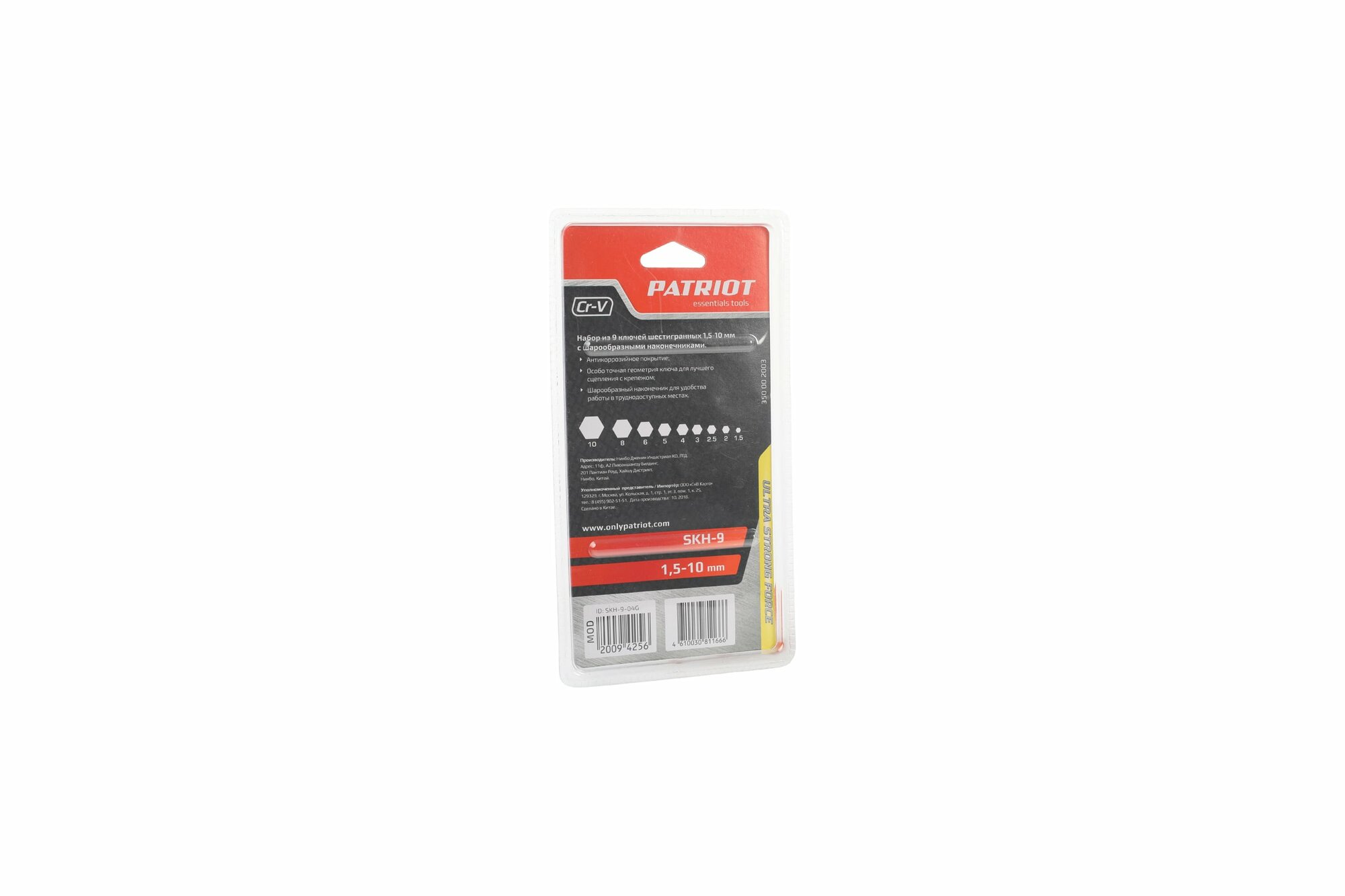 Ключи шестигранные с шаром Patriot SKH-9, 1,5 - 10 мм, 9 шт