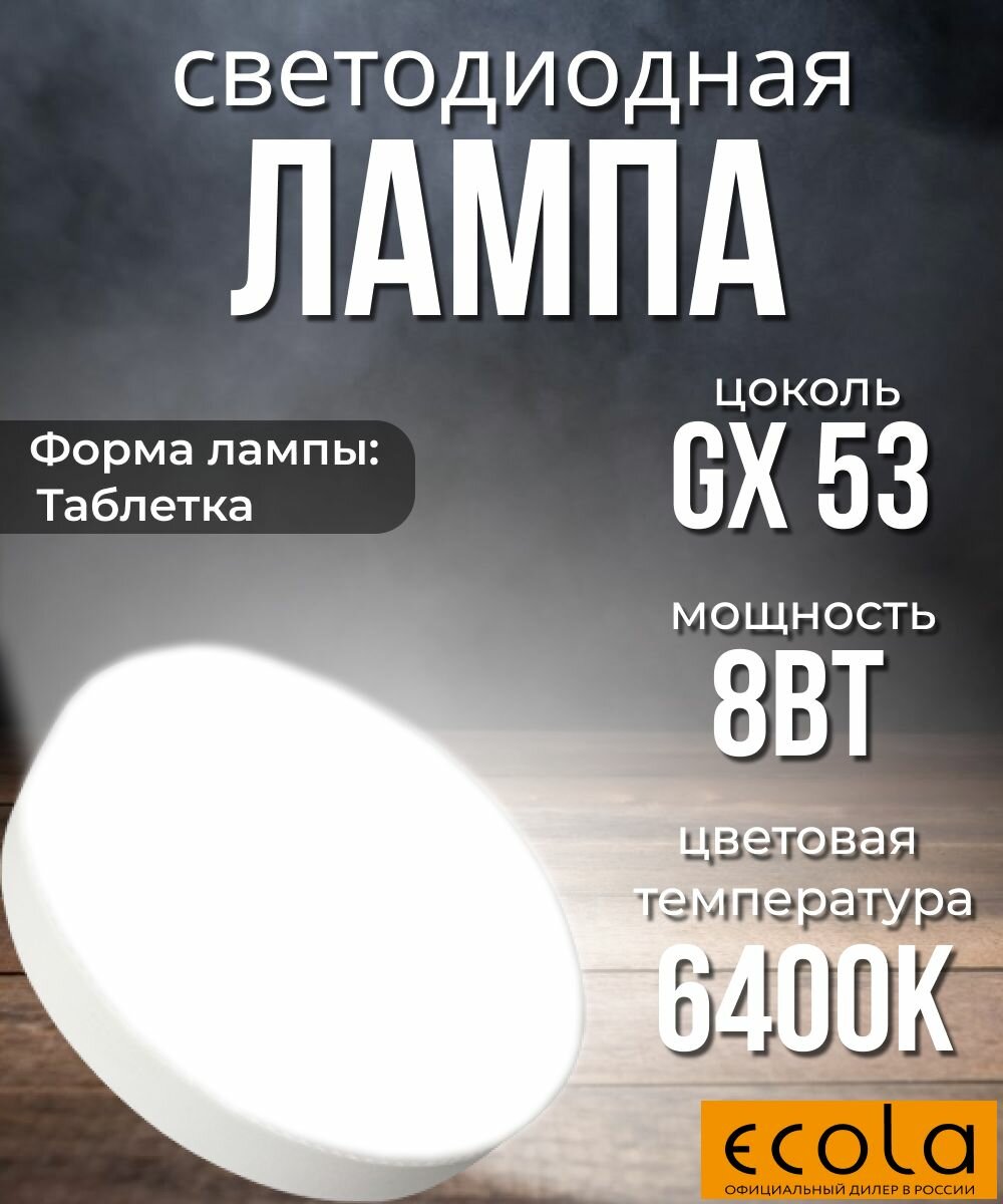 Лампа светодиодная Ecola Light GX53 6,0W 6400K холодный белый свет 27x75мм (лампочка Экола Tablet 220V LED 6 Вт)