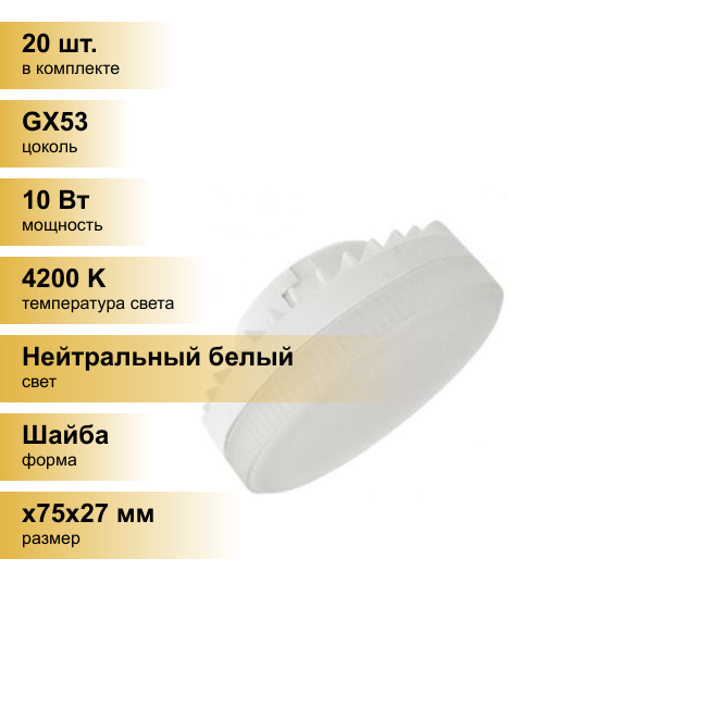 Сохранить(20 шт.) Светодиодная лампочка Ecola GX53 св/д 10W 4200K 4K 27x75 матов. T5QV10ELC Нейтральный белый. Цоколь GX53 интересное: