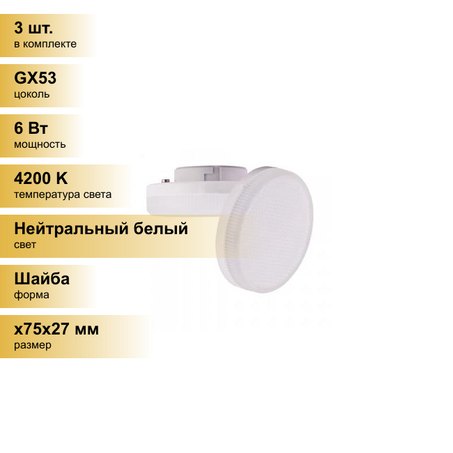 Сохранить(3 шт.) Светодиодная лампочка Ecola GX53 св/д 6W 4200K 4K 27x75 матов. T5QV60ELC Нейтральный белый. Цоколь GX53 интересное: