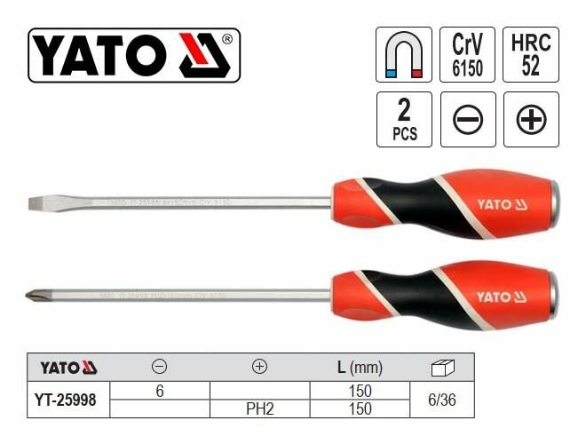 Набор Отверток Ударных Магнитных, 2 Пр: Ph2 X 150 Мм, Sl6 X 150 Мм YATO арт. YT-25998