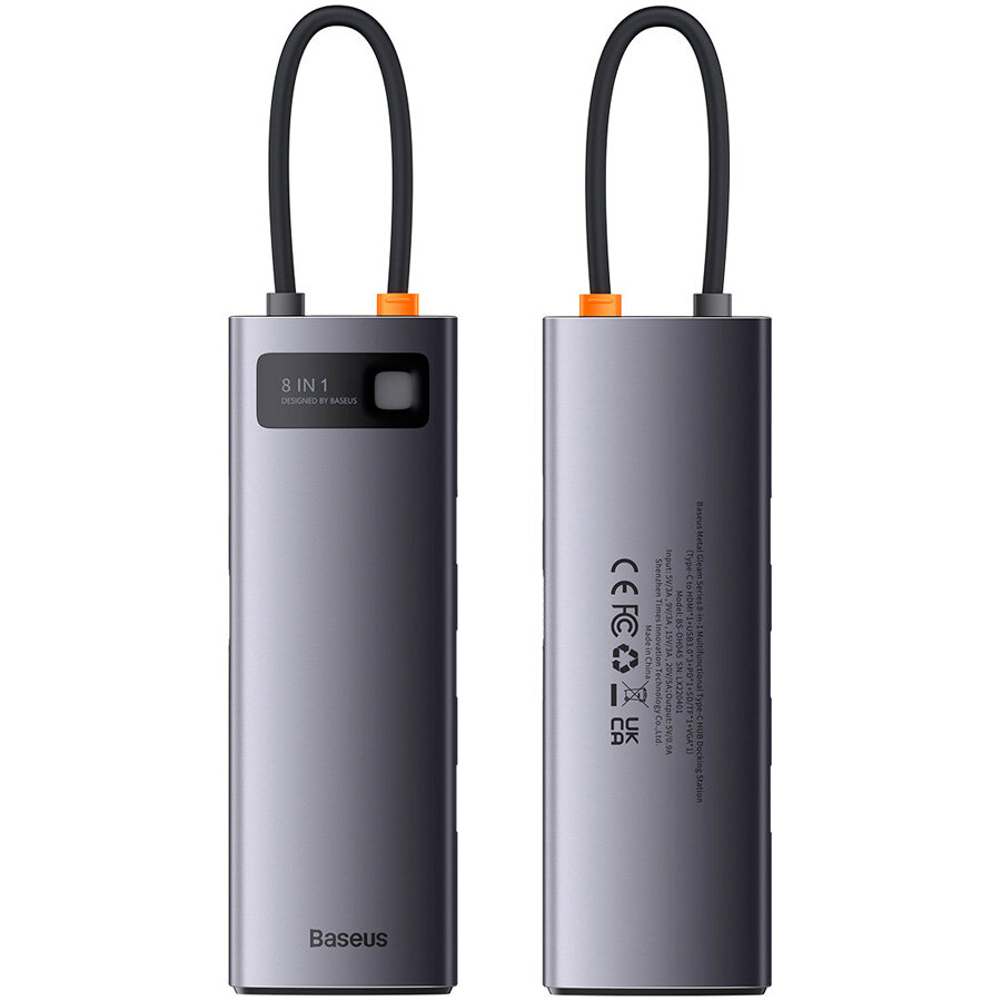 Хаб Baseus Metal Gleam Series 8-in-1 Multifunctional Type-C HUB Docking Station (Type-C to HDMI*1+USB3.0*3+PD*1+SD/TF*1+VGA*1) Серый (WKWG050013)