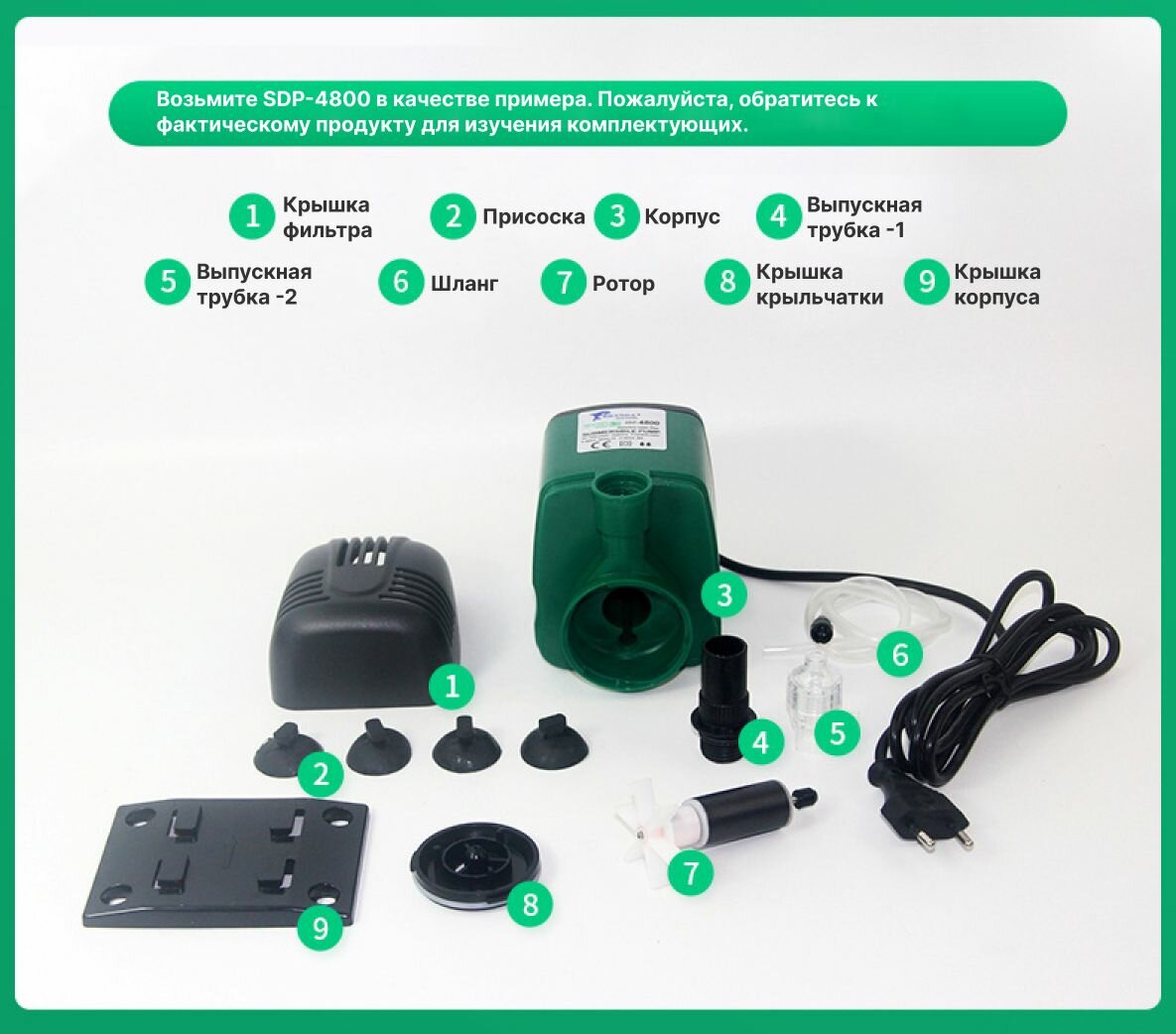 Водяная многофункциональная помпа SHANDA SDP-4800 для пресной и соленой воды в аквариум