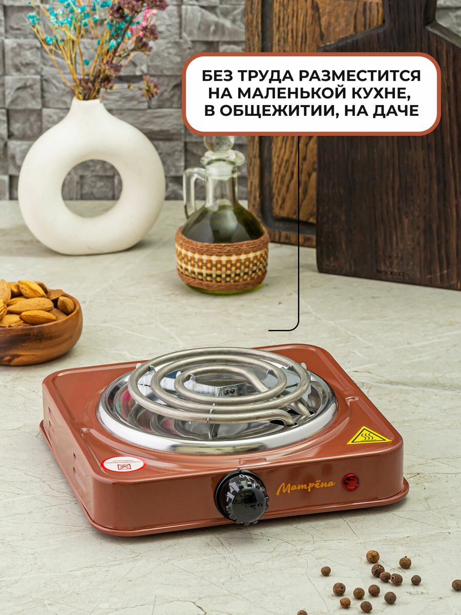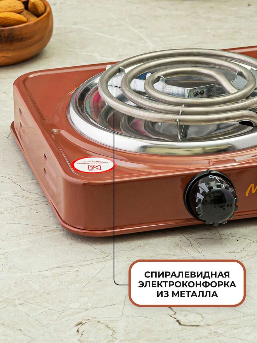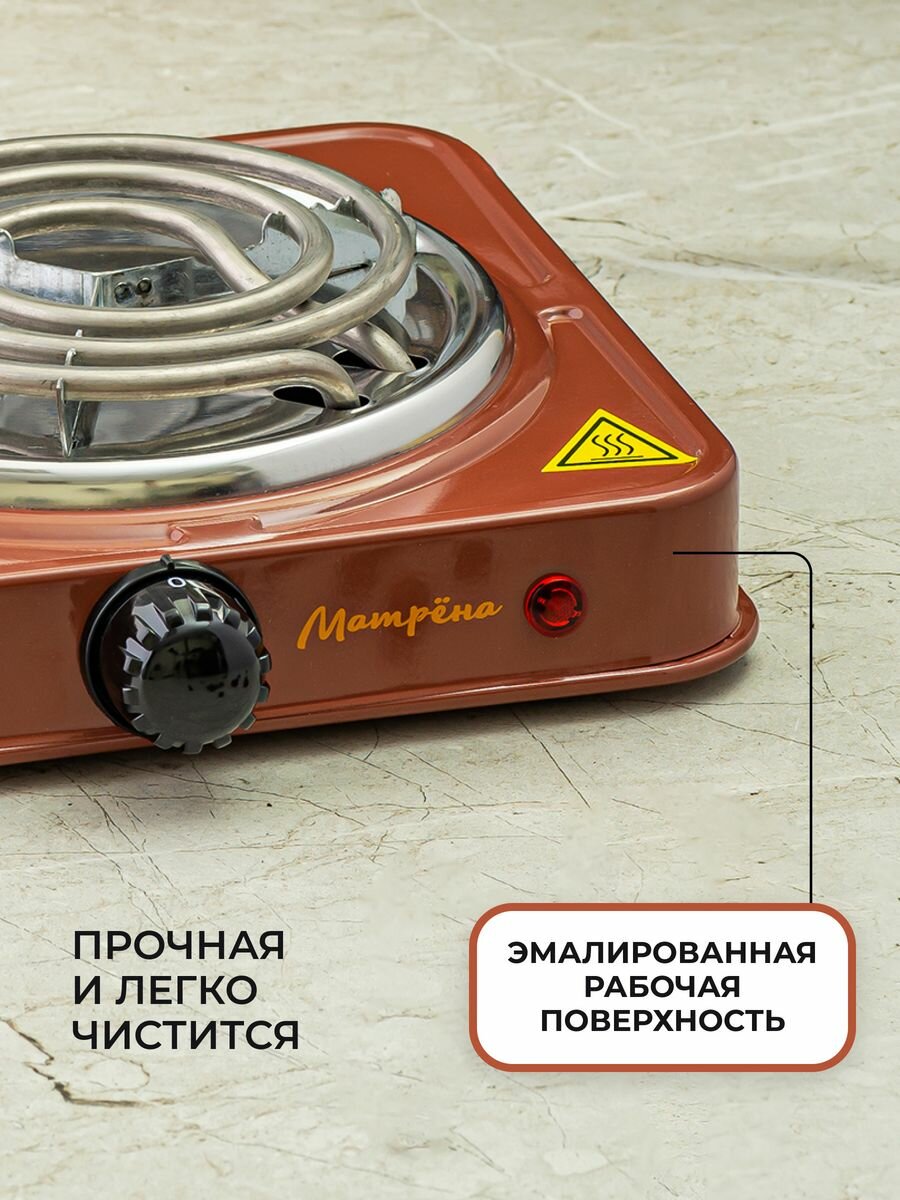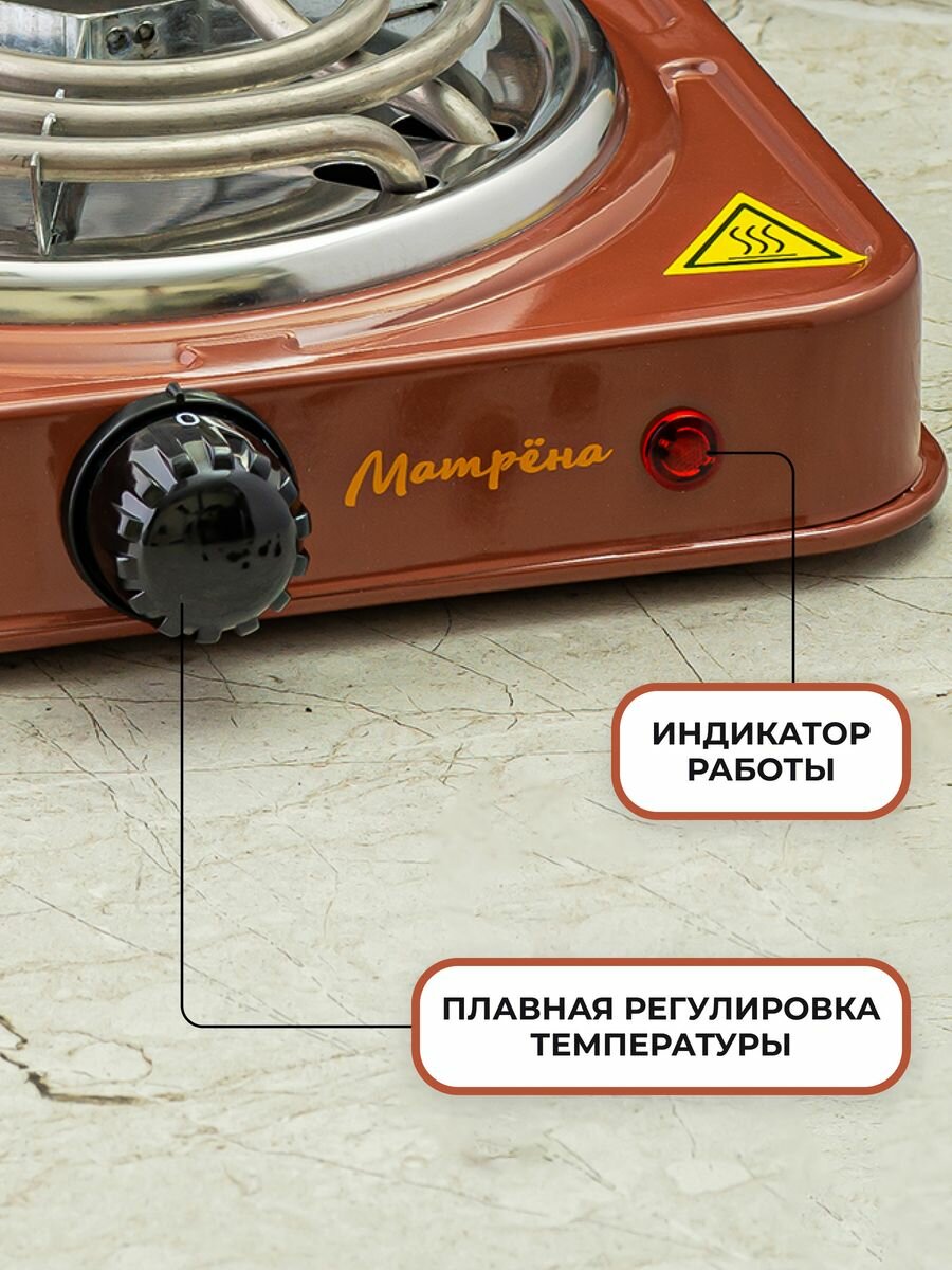 Электроплитка Матрена МА-060, 1 конфорка, спираль (ТЭН) 1кВт, коричневая 6056