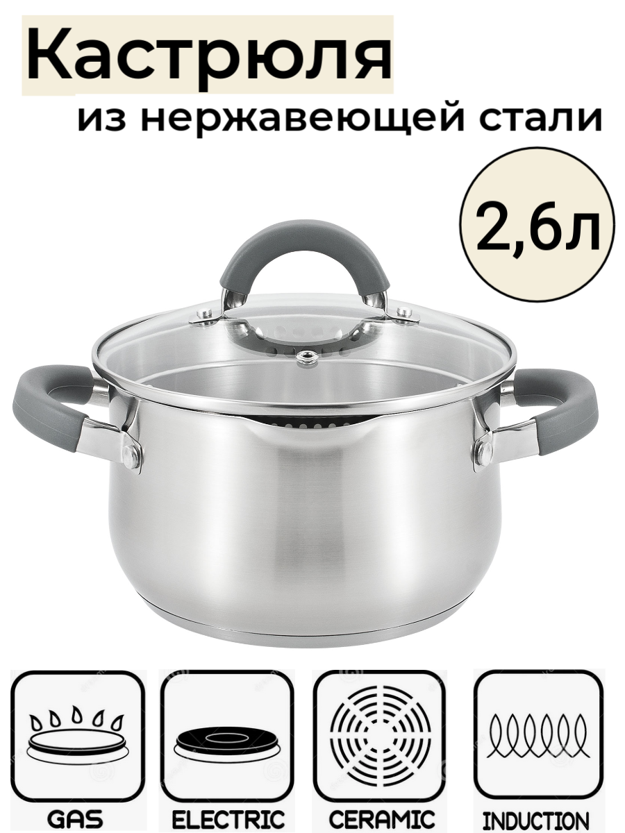 Кастрюля из нержавеющей стали с крышкой TAVOLONE "SUPINO" 2,6 л
