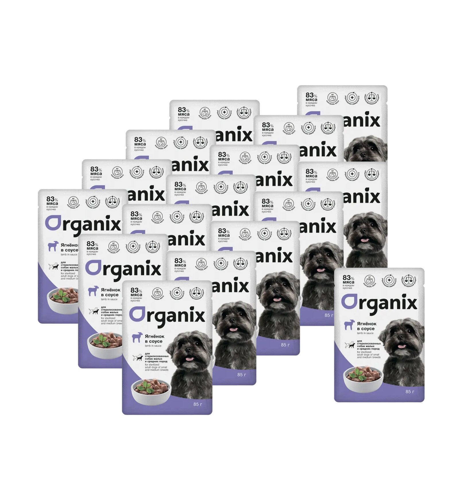 Корм влажный Organix для стерилизованных собак мелких и средних пород, ягненок в соусе, 85 г