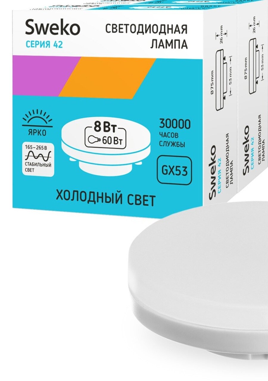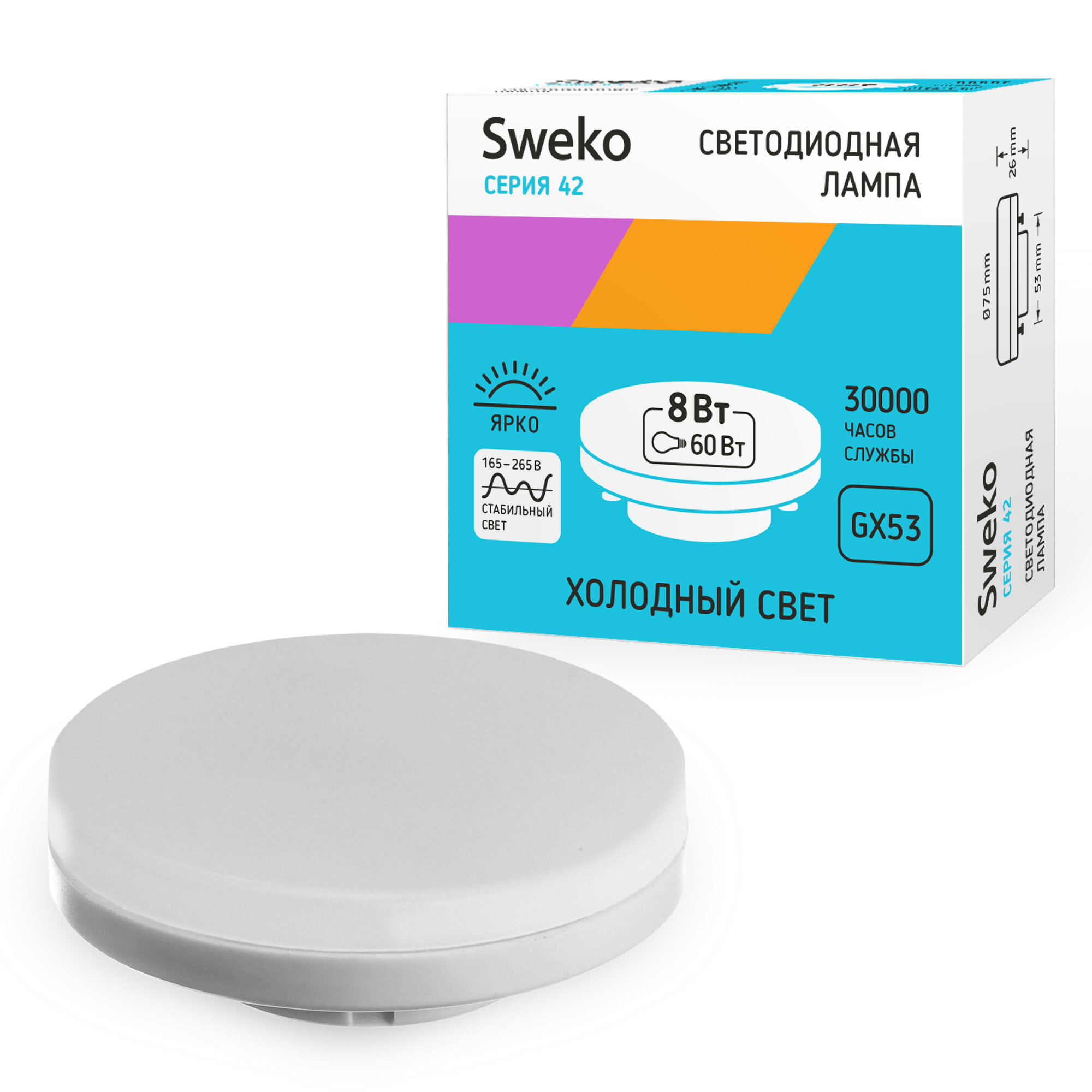 Лампа диодная Sweko холодная GX53 8Вт 4000/740лм 165-265В матовая