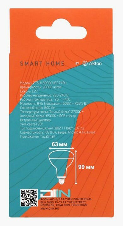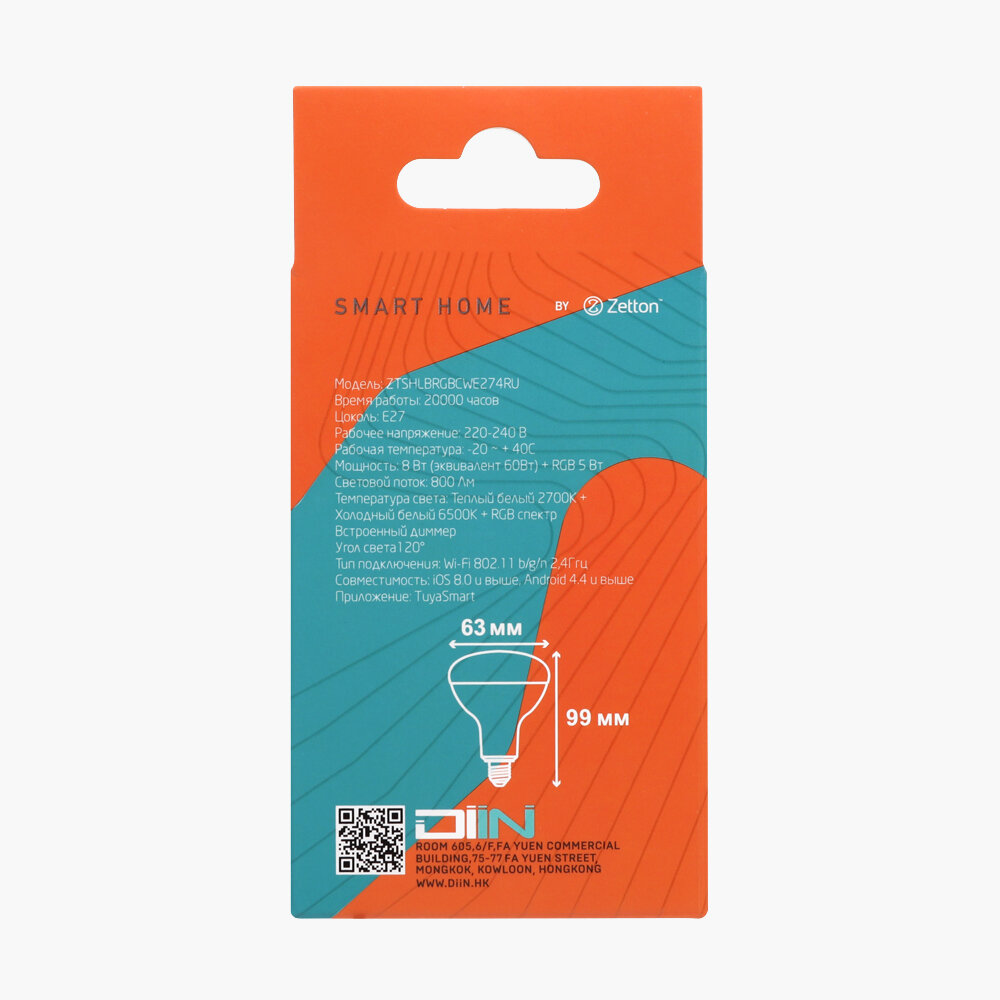 Купить Умная лампа Zetton LED RGBCW Smart Wi-Fi Bulb BR20 E27 8Вт ZTSHLBRGBCWE274RU (коробка)