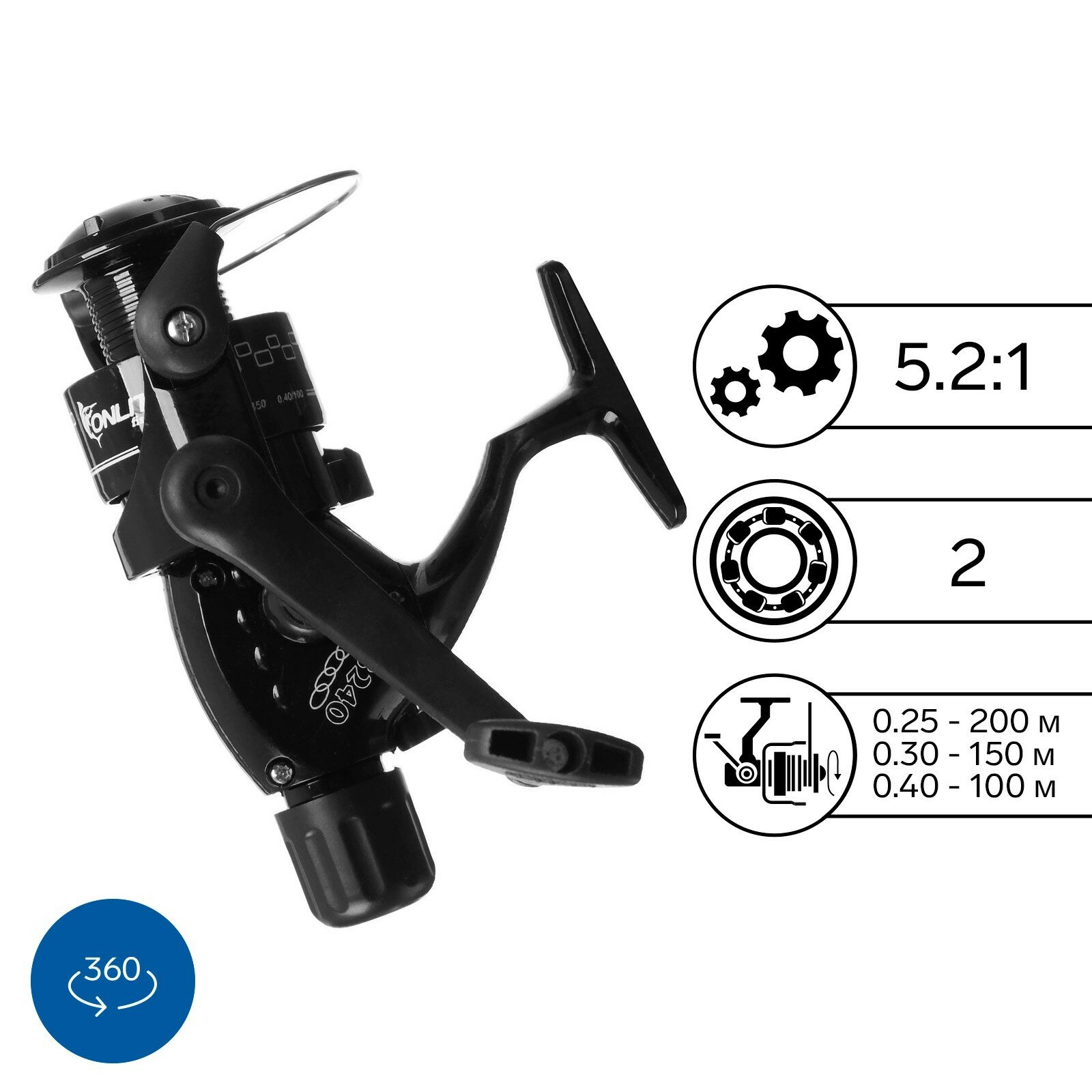 ONLITOP Катушка СВ240, 2 подшипника, 5.2:1, пластиковая шпуля