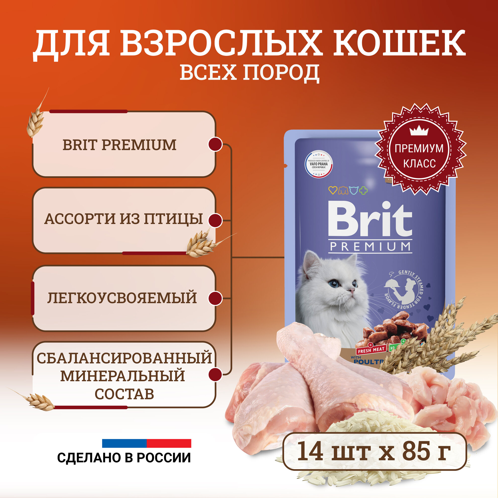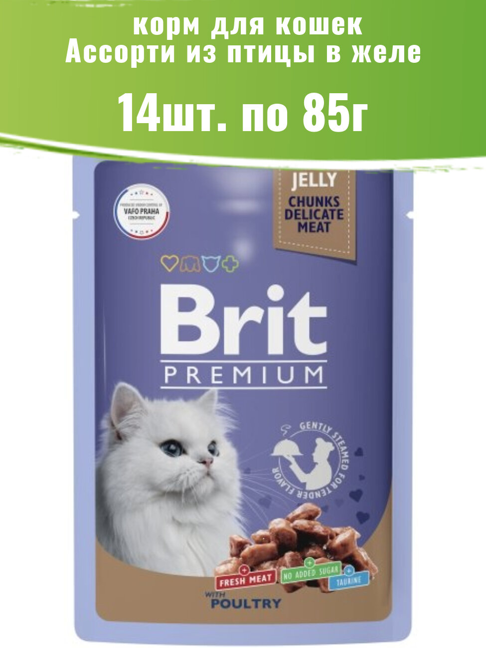 Купить Brit Premium Влажный корм для кошек Ассорти из птицы в желе 14шт*85гр