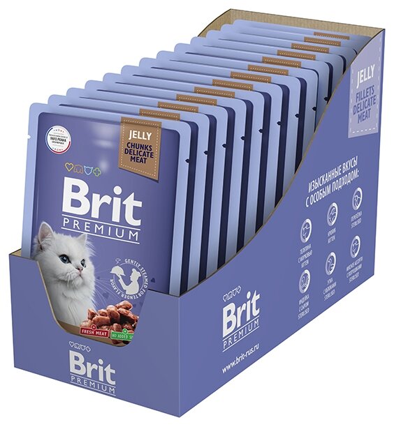 BRIT PREMIUM, влажный корм для кошек. Пауч для взрослых кошек, Ассорти из птицы в желе, 85г
