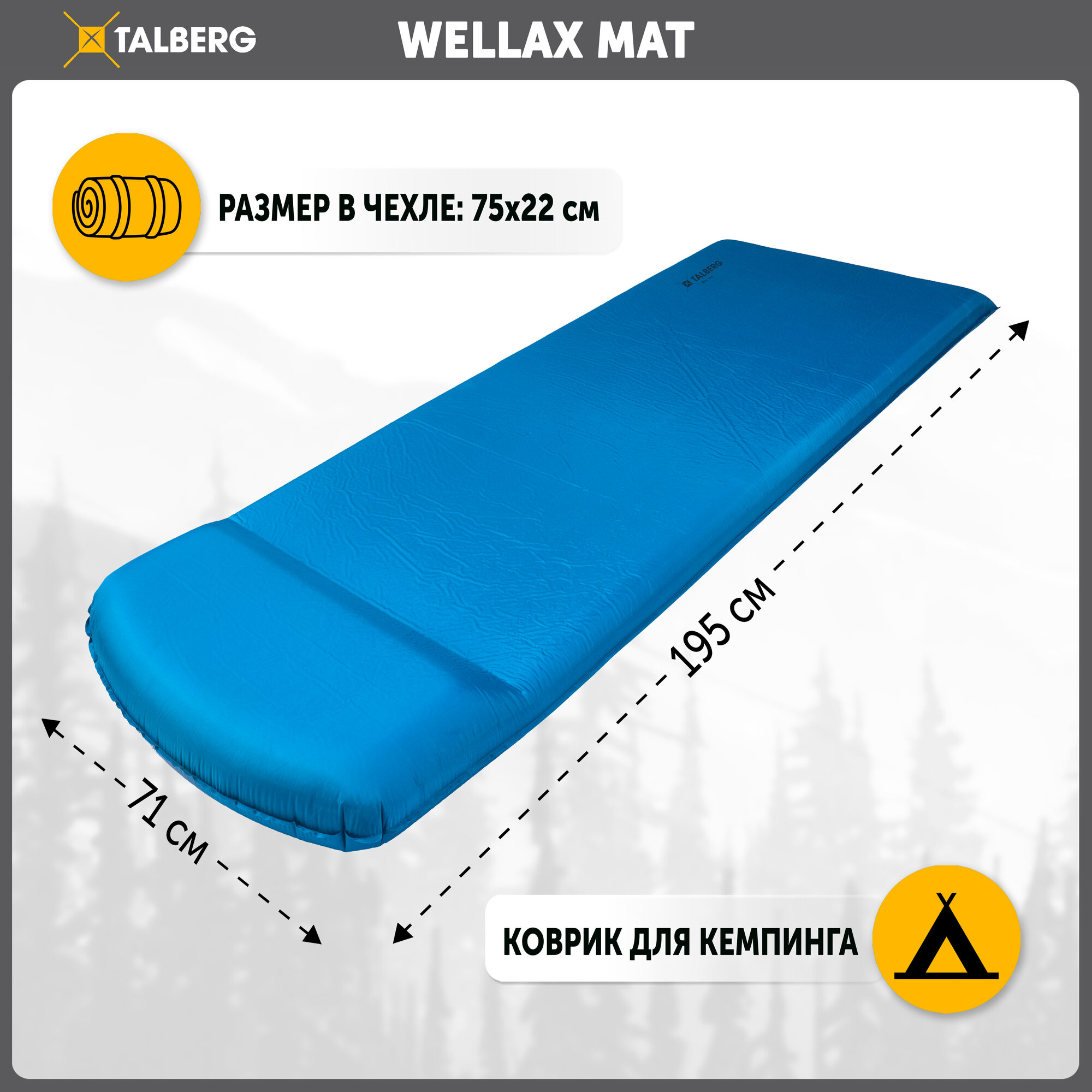 Коврик самонадувающийся Talberg Wellax Mat, синий, 195 x 71 x 7,5 см интересное: