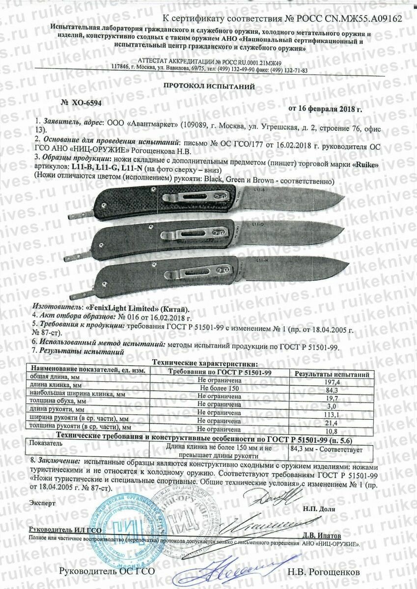| Дополнительная информация | толщина лезвия у обуха: 3 мм |