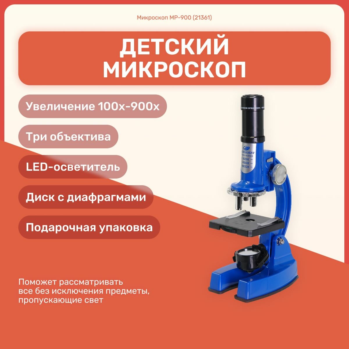 Микроскоп SET MP-900 увеличение 100-900х детский, 3 объектива, источник света зеркало и лампы.