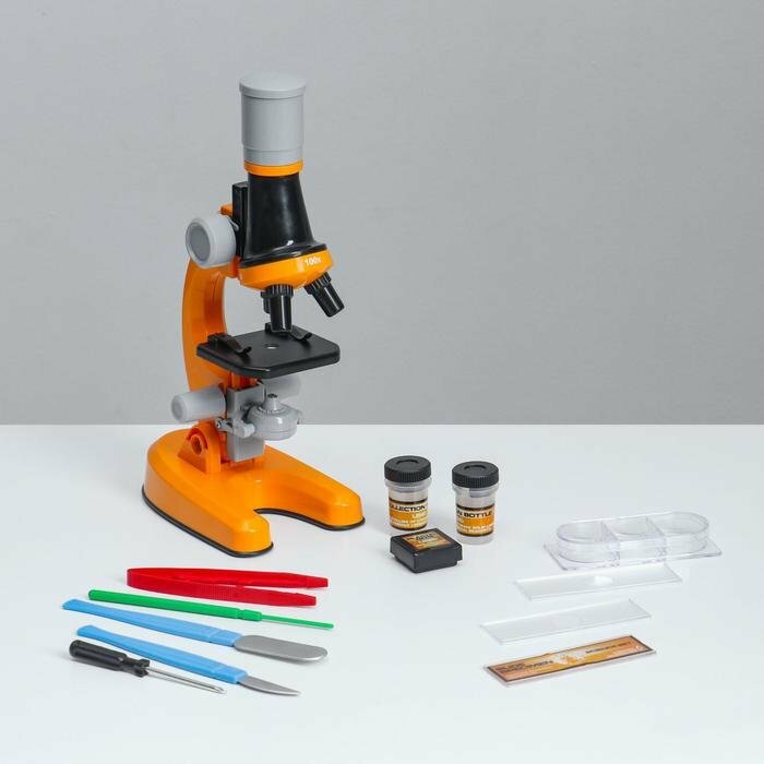 Микроскоп "Юный ботаник" кратность до х1200, оранжевый, подсветка (комплект из 2 шт) интересное: