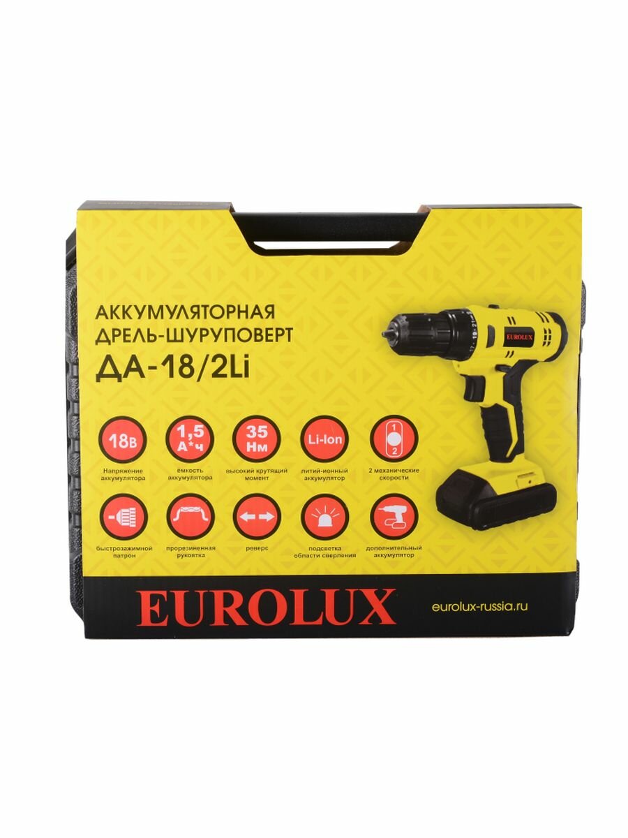 Дрель-шуруповерт аккумуляторная ДА-18/2Li Eurolux, 18В, 2 акб и ЗУ, в кейсе